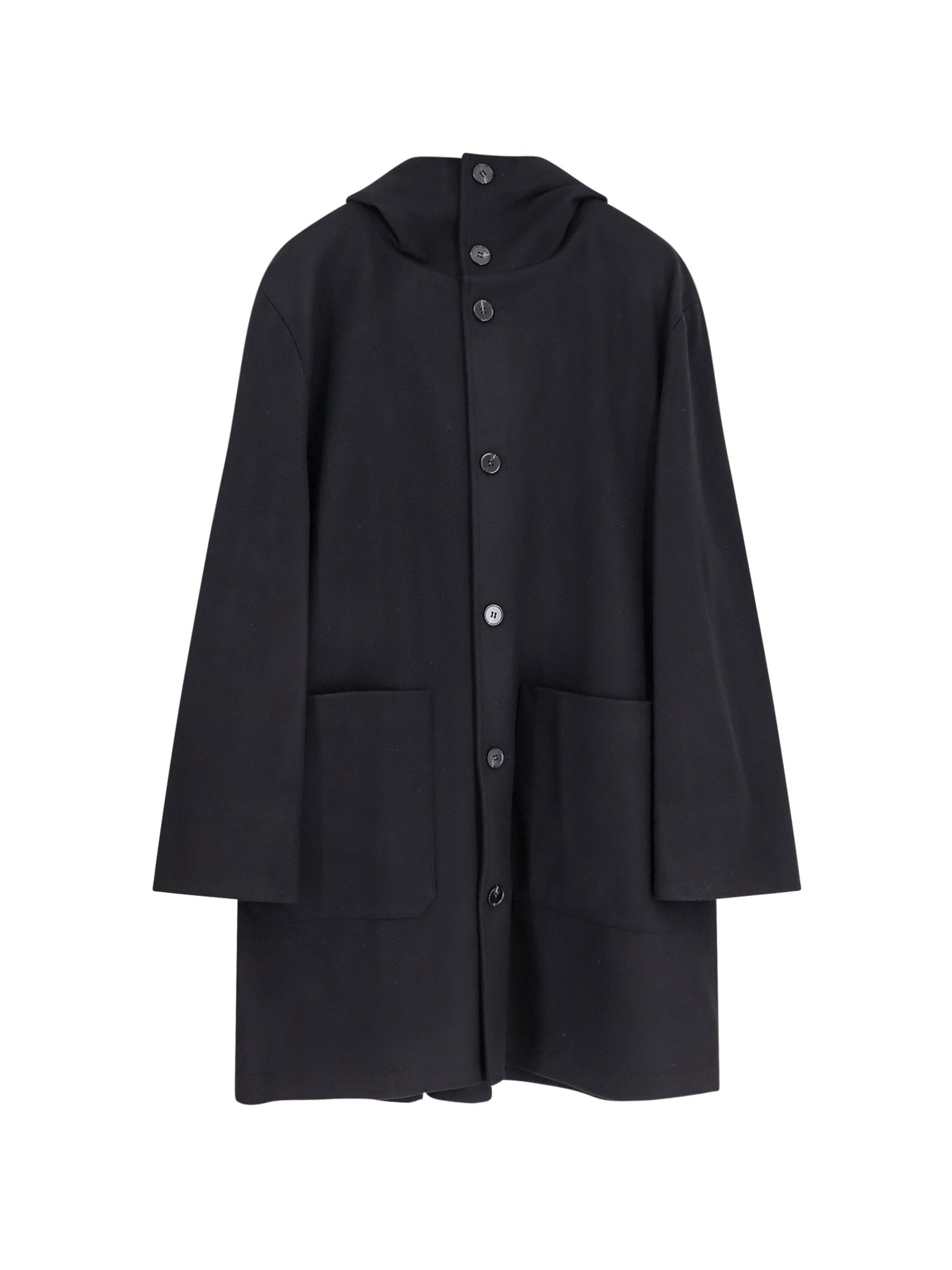 Hooded Button closure Large patch pockets High collar 80% wool, 20% nylon Lining: 65% polyester, 35% cotton SKU: B51PXTONIFWONER