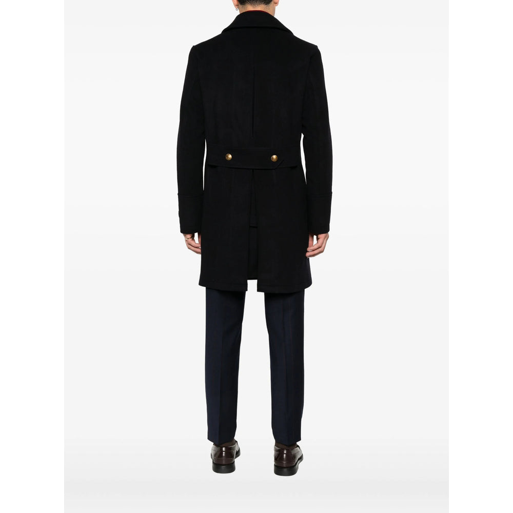 blue double breasted gold buttons peak lapels welt pockets straight hem