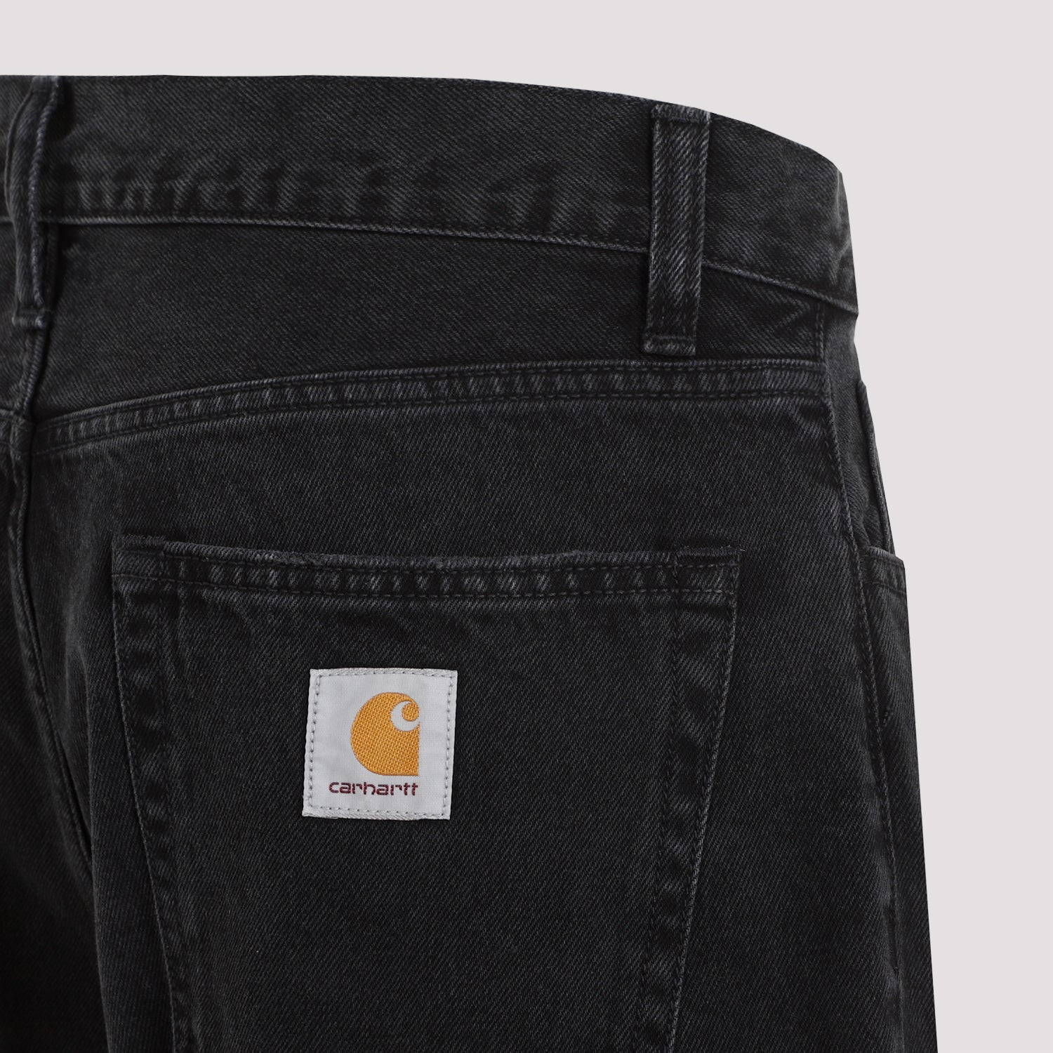 Carhartt Wip Black Cotton Single Knee Pant. Front concealing zipped fastening, front buttoned fastening, belt loops, side pockets, back pockets with signature logo patch, side little pockets along the legs, straight hem.