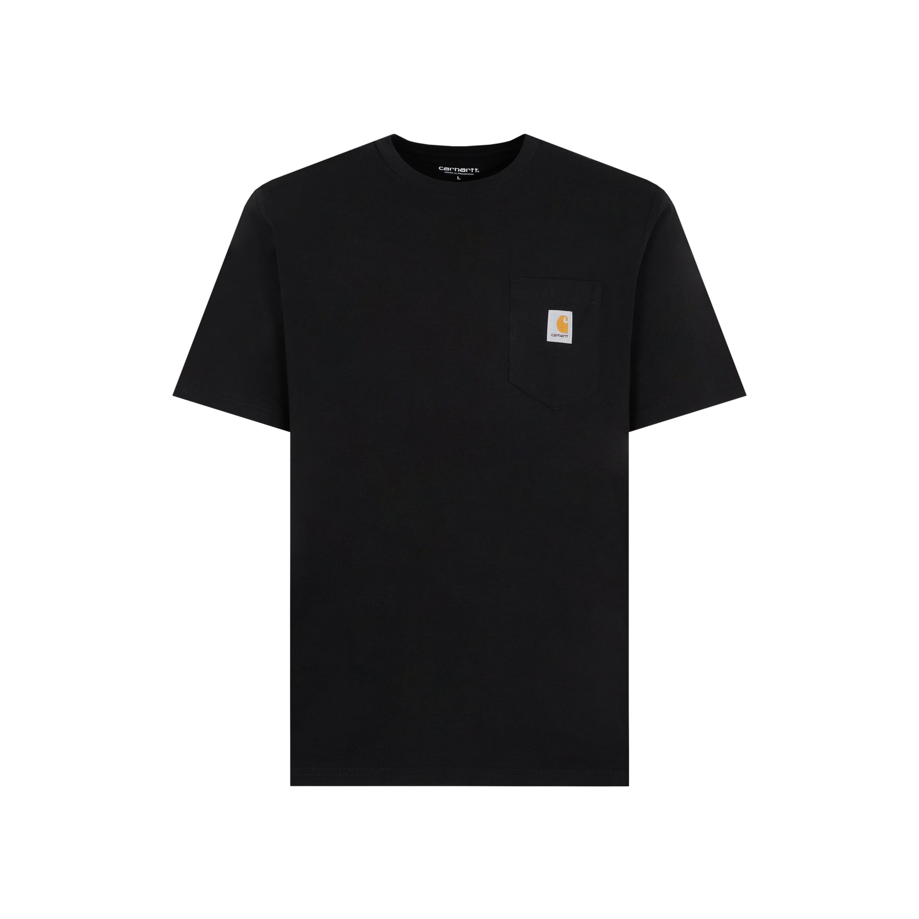 Carhartt Wip Black Cotton T-Shirt with pocket. Black cotton, crew neckline, short sleeves, chest pocket with logo patch, straight hem, regular fit.