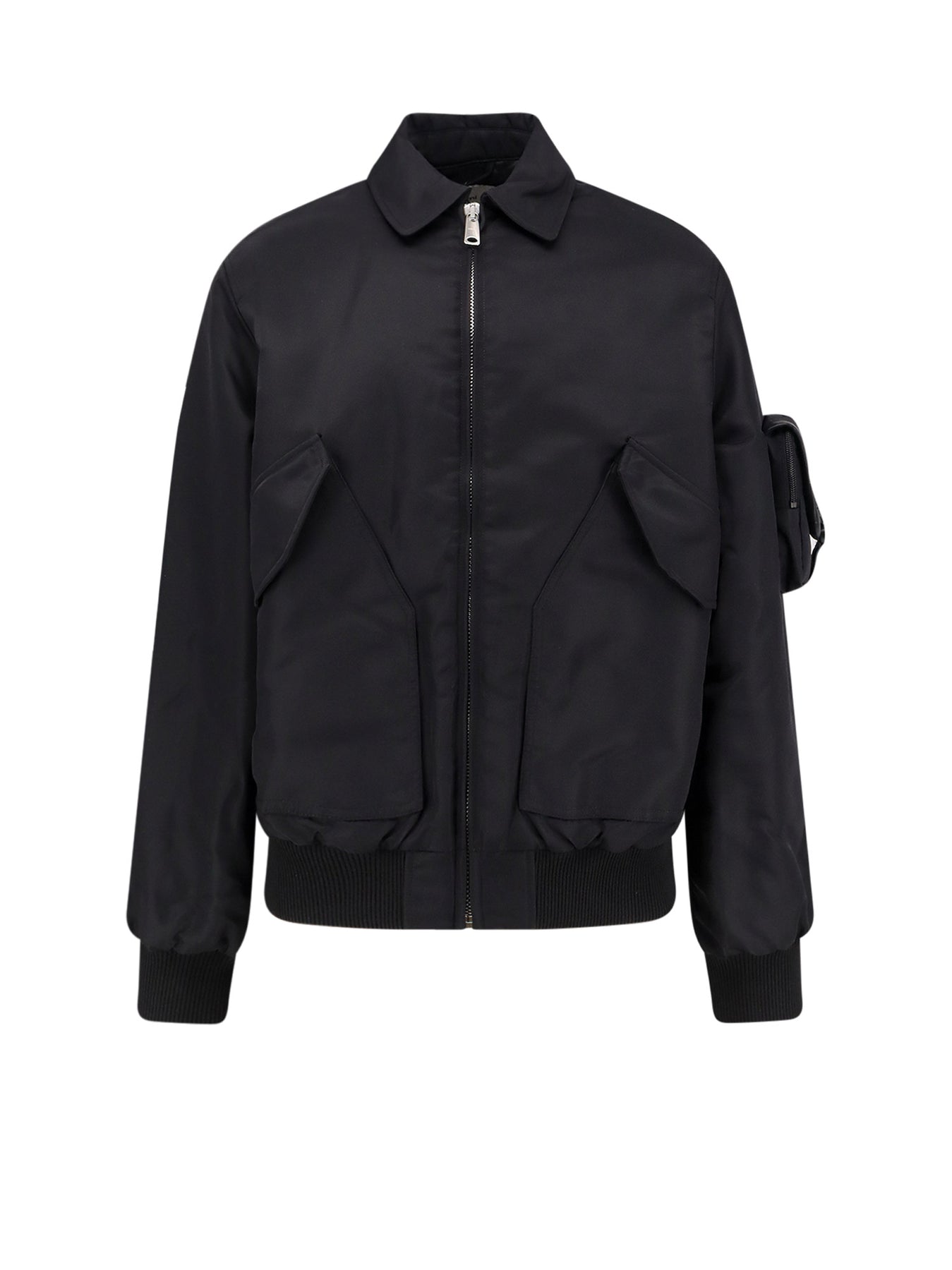 Zip closure Front pockets with flap and Velcro Pocket with strap and buckle on the left sleev Ribbed profiles Made in Italy 100% recycled polyamide Lining: 52% acetate, 48% viscose SKU: COPBL32F3003BLK