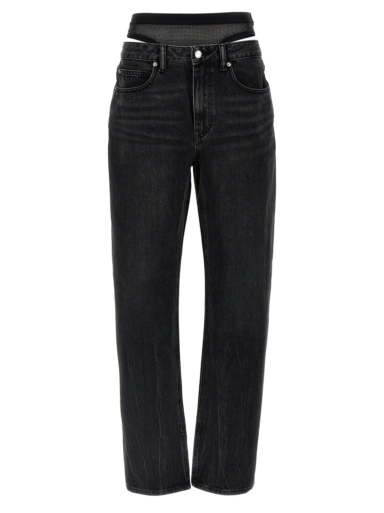 Slit Hem Prestyle Hotfix Mesh Undie Jeans Nero