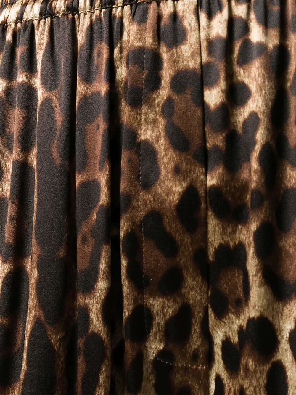 Pantaloni dritti leopardati Pantaloni dritti leopardati di Dolce & Gabbana. Modello con vita elasticizzata, design plissettato, vestibilità gamba dritta e stampa leopardo. Origine: Italia Composizione seta 93%, spandex/elastam 7% Istruzioni per il lavaggio Lavare solo a secco ID FTAMPTFSAXY