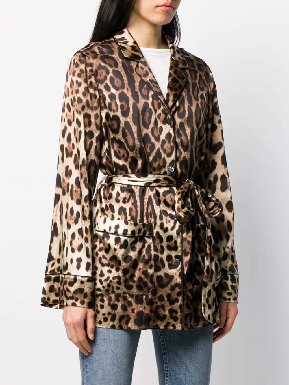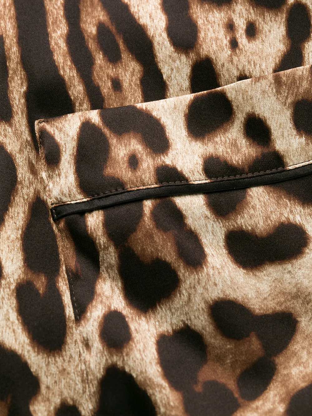 Camicia leopardata Camicia leopardata in seta di Dolce & Gabbana. Modello con bavero classico, abbottonatura frontale, punto vita con cintura, due tasche frontali e maniche lunghe ampie. Origine: Italia Composizione seta 93%, spandex/elastam 7% Istruzioni per il lavaggio Lavare solo a secco ID F5I89TFSAXY