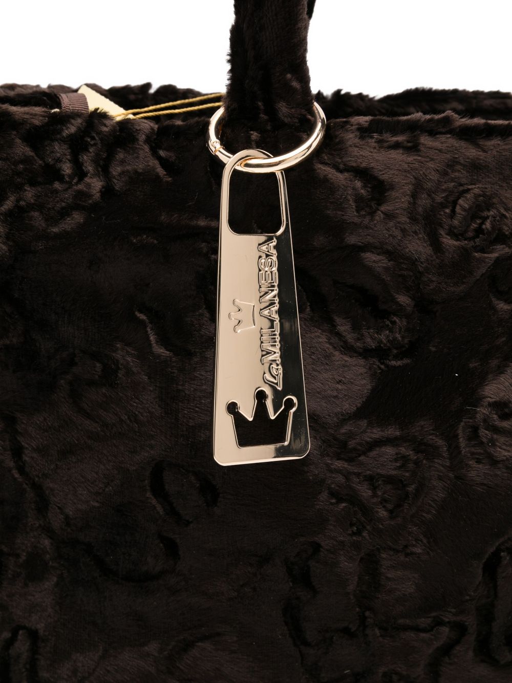 brown cotton floral pattern top handles logo detail gold-tone hardware