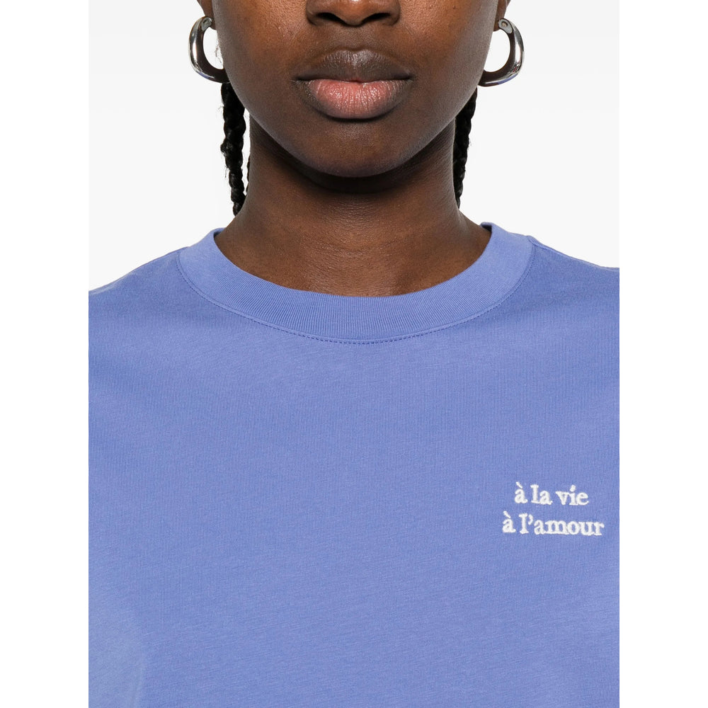 periwinkle blue organic cotton short sleeves crew neck embroidered detail