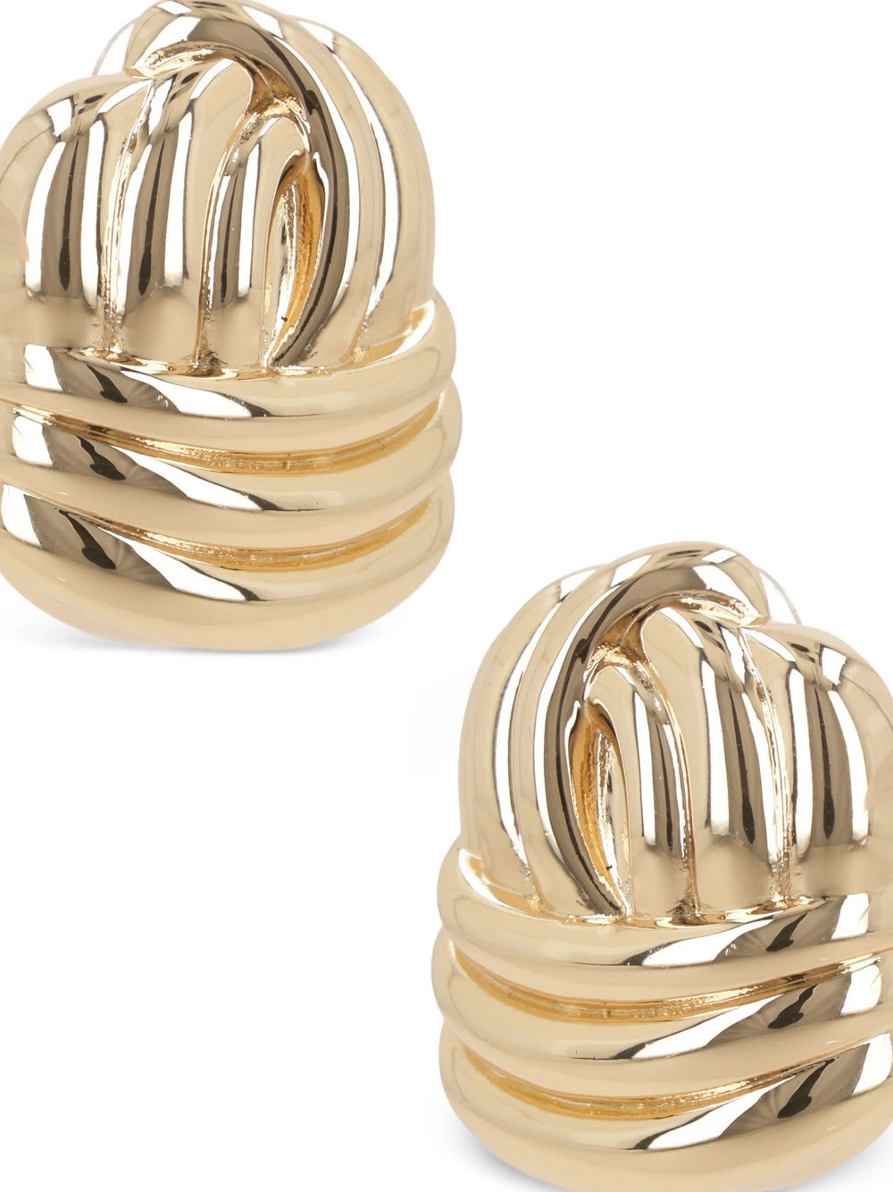 Orecchini con design a nodo Caratteristiche color oro design con nodo texture lucida chiusura a pressione Questi orecchini sono venduti in coppia. L`uso giornaliero e gli agenti esterni potrebbero ridurre la lucentezza delle gemme e dell`oro. Per mantenerli perfetti, usare prodotti non abrasivi specifici per la pulizia dei gioielli. Composizione ottone ID AW25612EGD