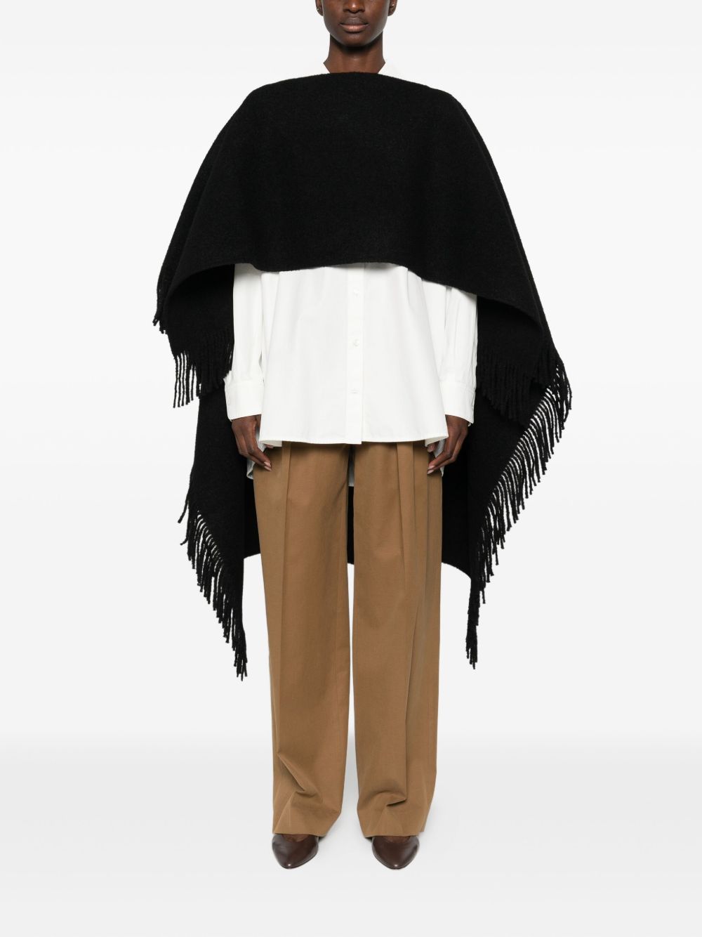 black fringed trim wool blend wraparound style