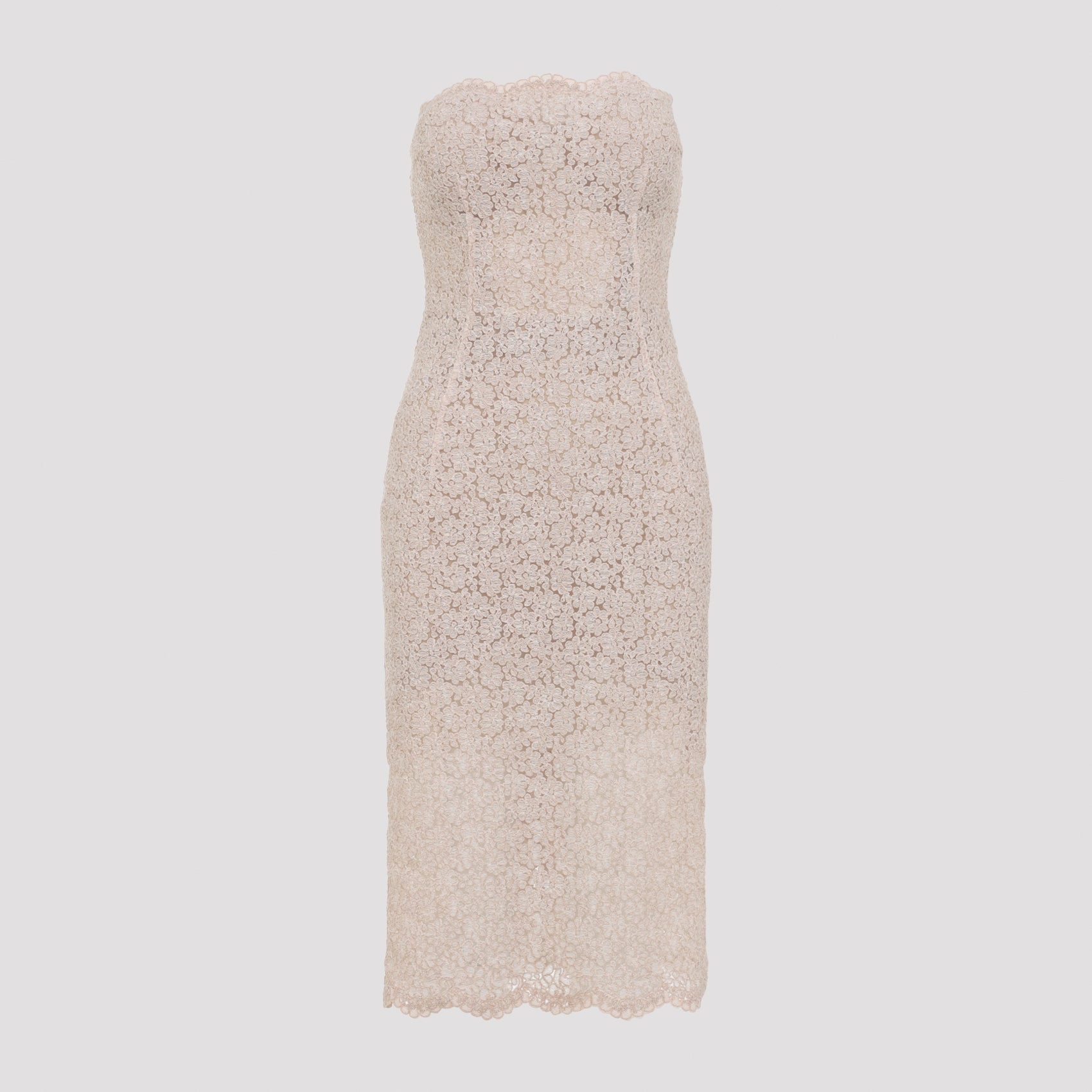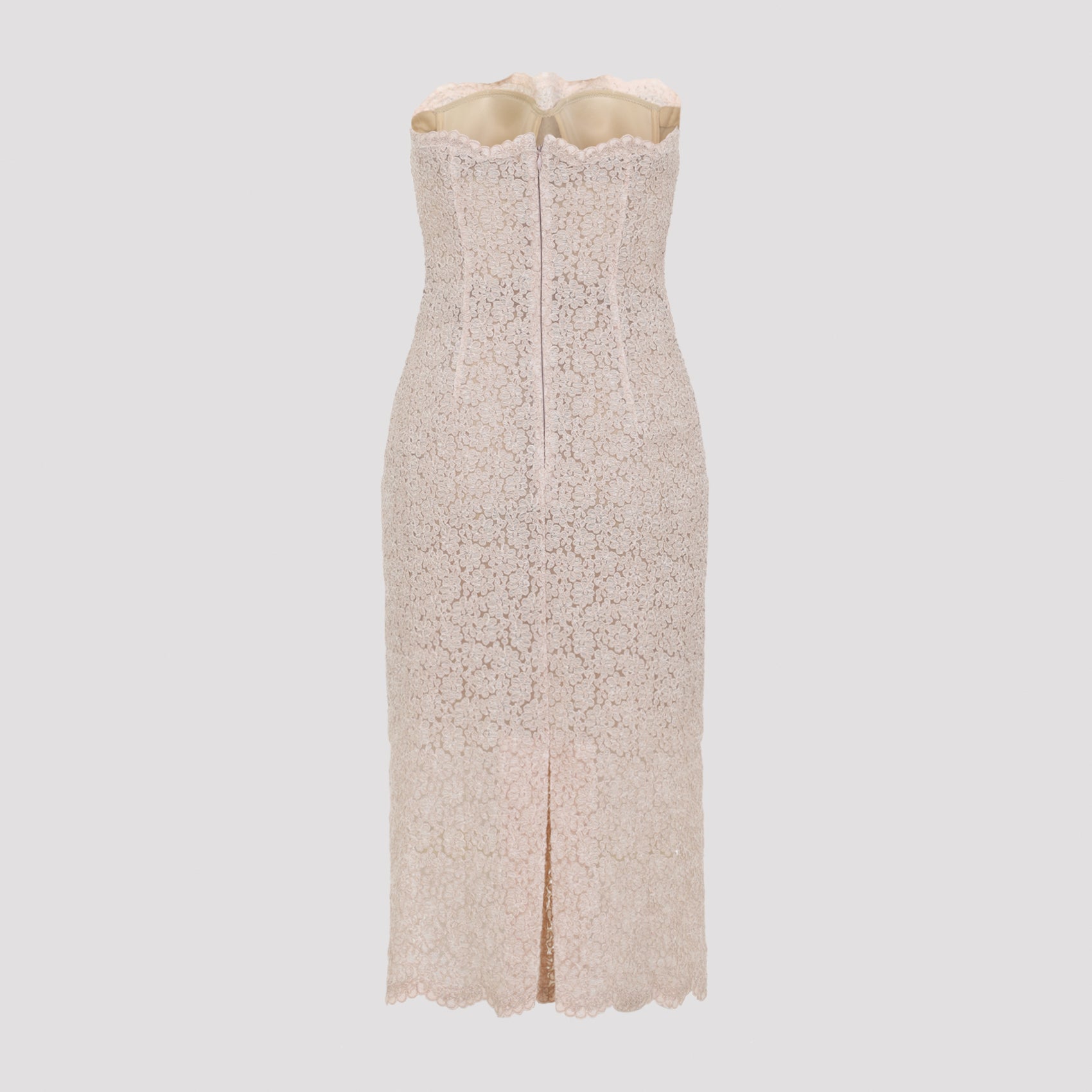 Ermanno Scervino Lace Pink Cotton Midi Dress. Midi dress crafted from pink floral lace, it features a straight neckline, pre-formed bra cups, a concealed zip fastening at the back, scalloped hems, and a lining.