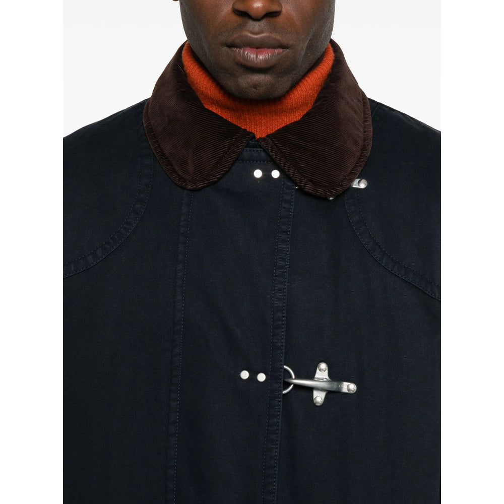 navy blue suede inserts corduroy collar hook fastening front pockets