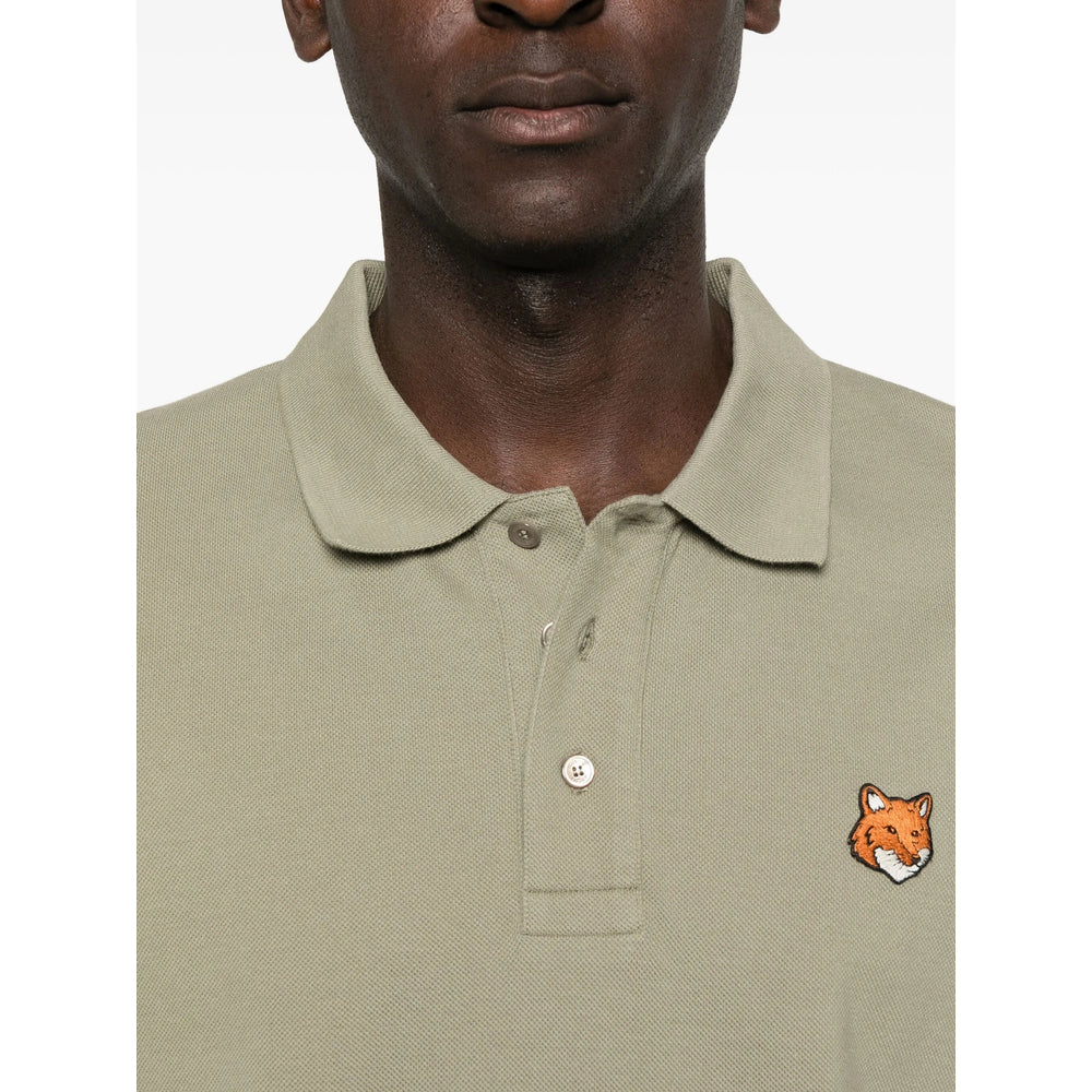 laurel green short sleeves button placket fox-head embroidery polo collar straight hem