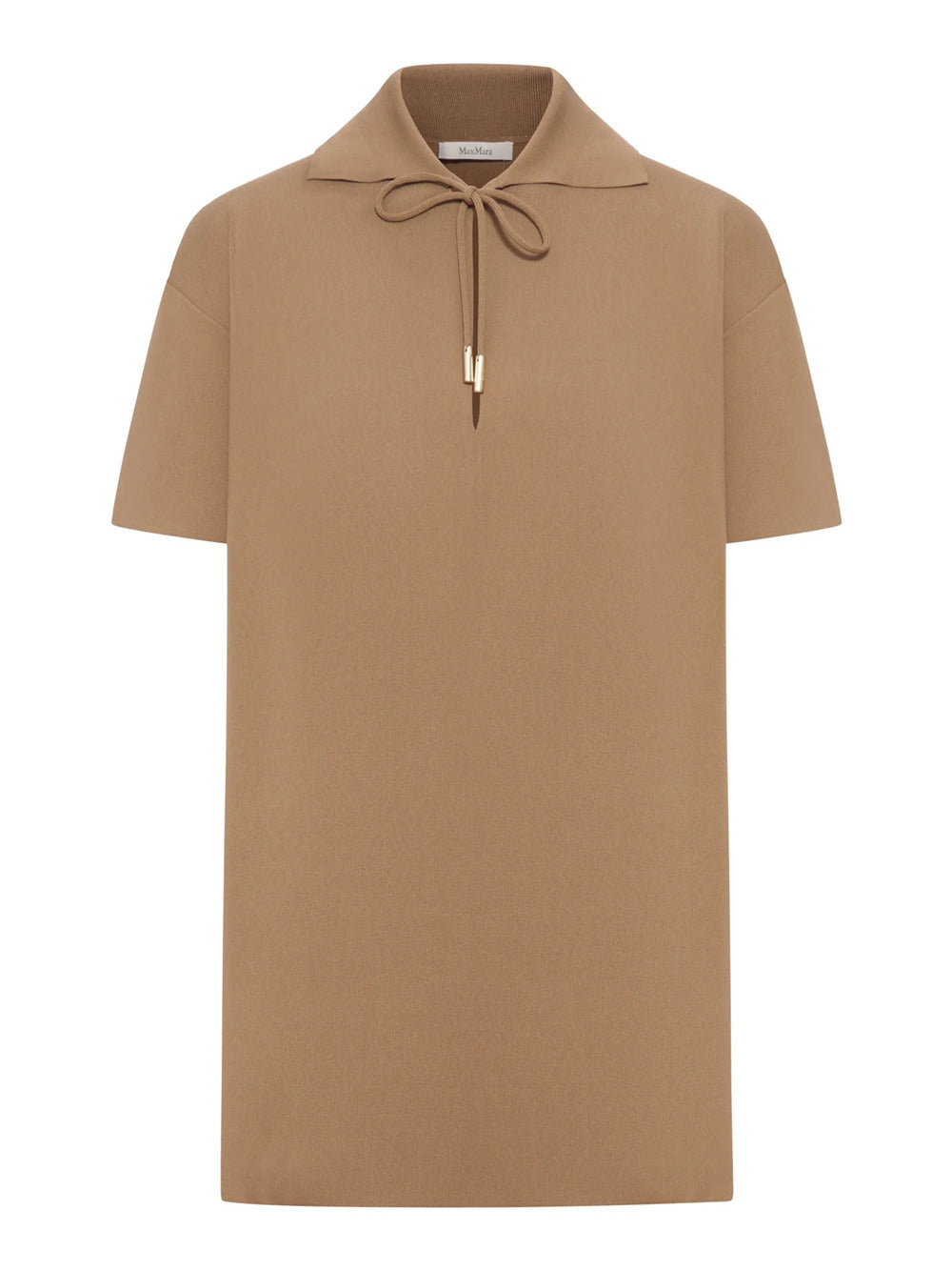 Blusa in filato di viscosa crêpe Blusa a maniche corte, caratterizzata da una lavorazione a maglia unita sul davanti e texture effetto plissé sul retro. Il tessuto principale di questo capo contiene materie prime derivanti dalla cellulosa del legno, fibra ricavata nel rispetto del patrimonio forestale Blusa in filato di viscosa crêpe Linea dritta Colletto modello polo aperto Scollo a V aperto con laccetto tubolare e finalini in metallo Spacchi laterali 65% viscosa, 35% poliammide. Colore: NOCCIOLA