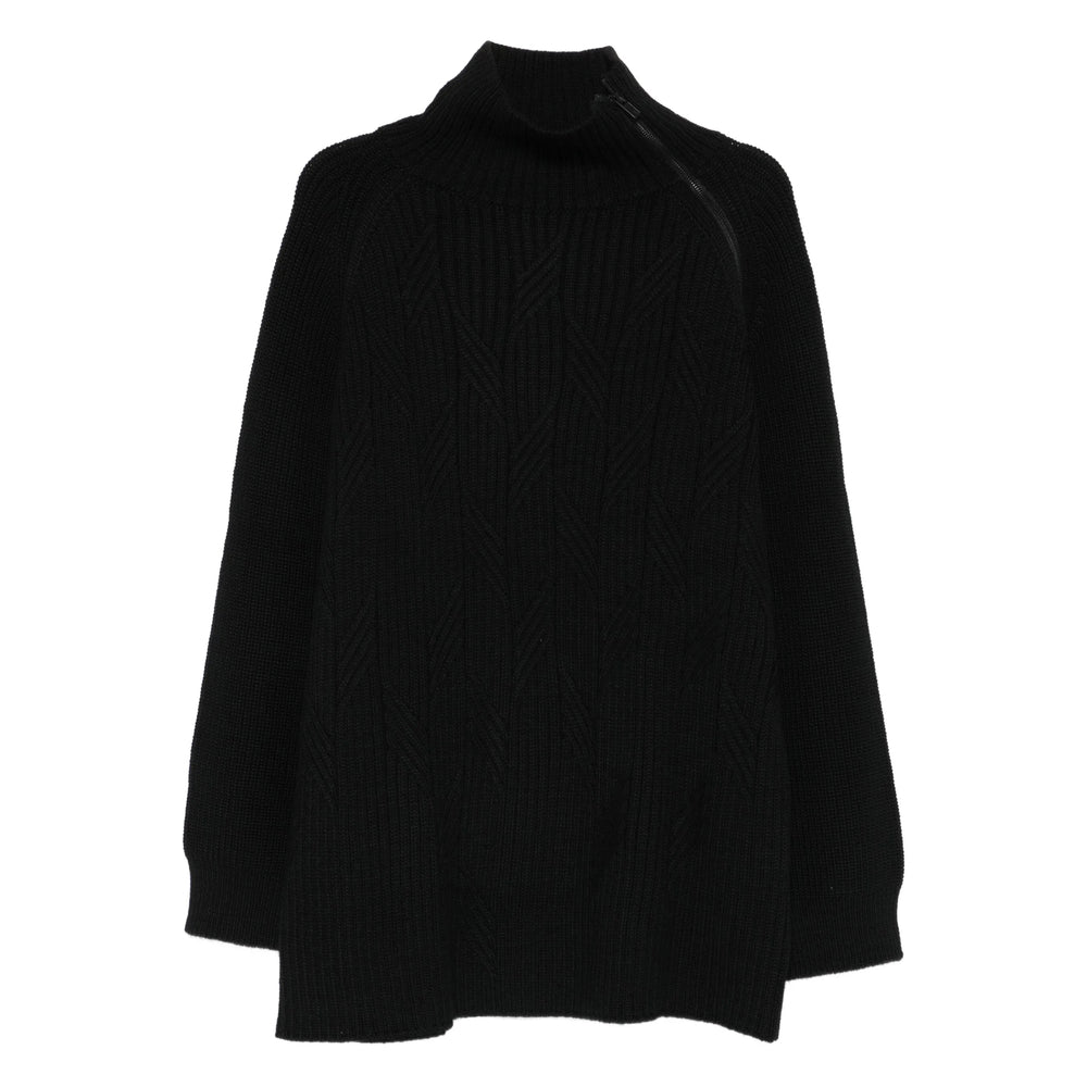 black high neck cable knit side zip fastening long sleeves relaxed fit