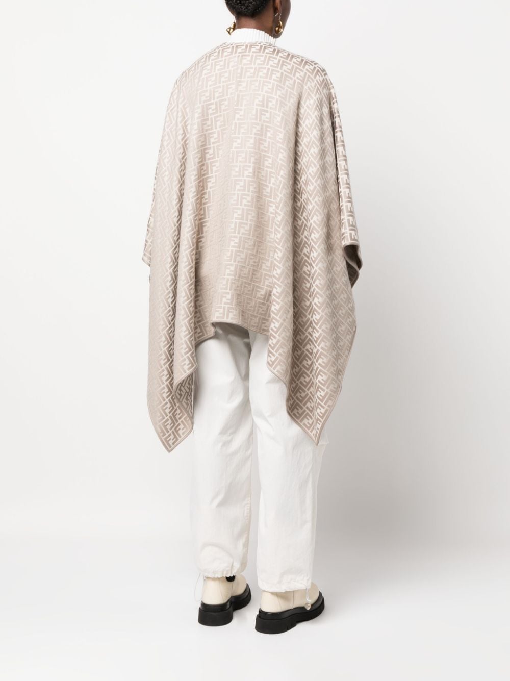 sand beige/white wool-silk blend signature Zucchino monogram pattern draped design open front finished edge asymmetric design