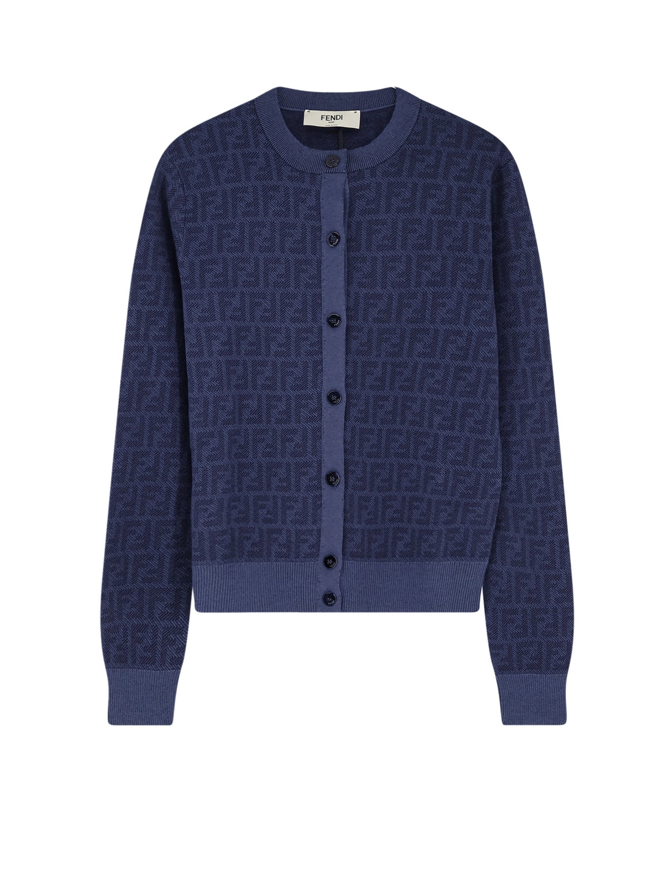 Button closure Ribbed crew neck Long sleeves with cuffs All-over FF embroidery 56% wool, 44% silk SKU: FZE566AYM1F1UKI