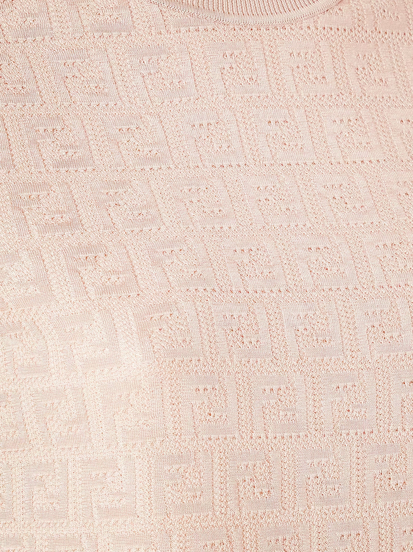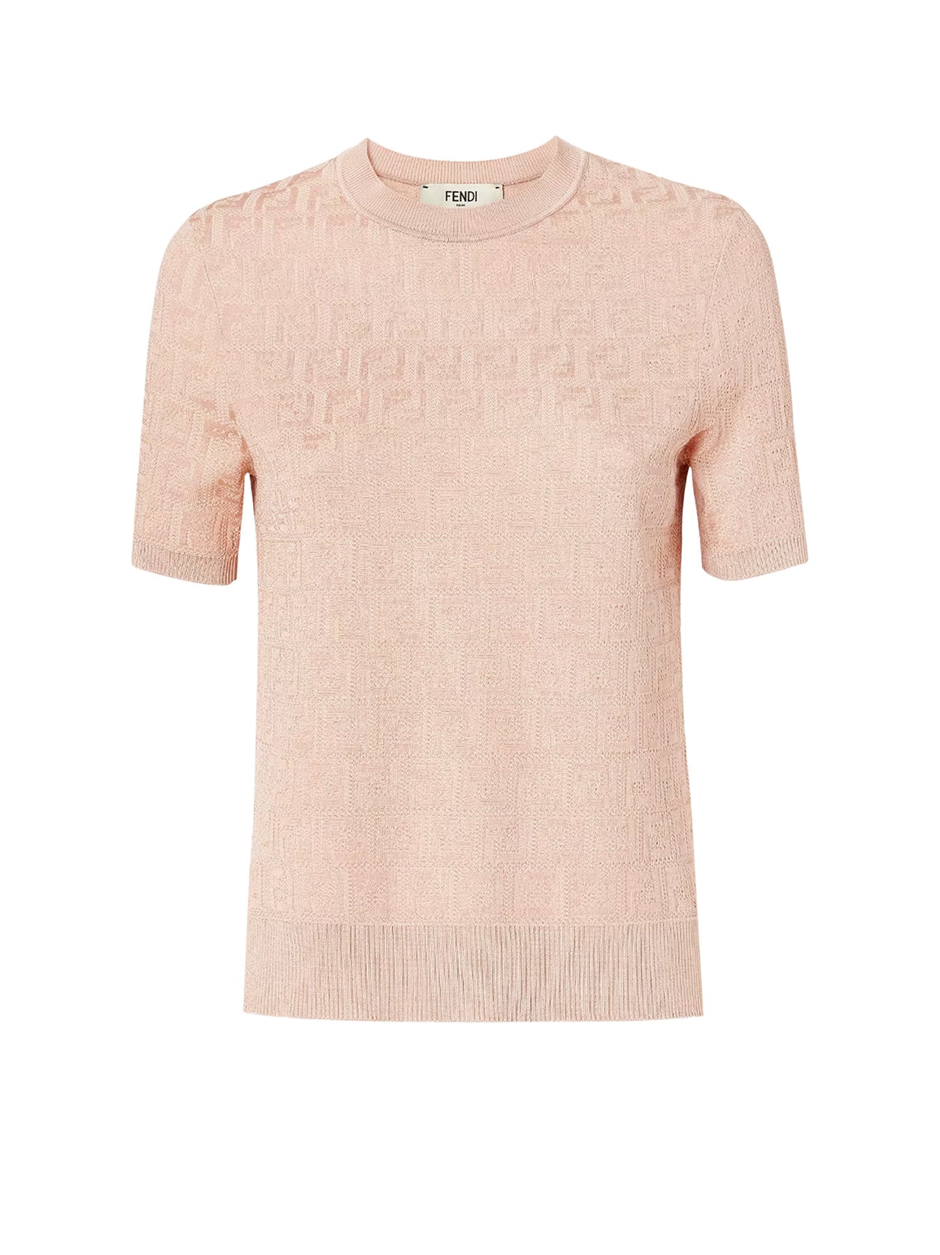 Ribbed crew-neck Short sleeves Lateral slits FF all-over motif Made in Italy 54% cotton 46% viscose SKU: FZXD57AUZRF1SAU