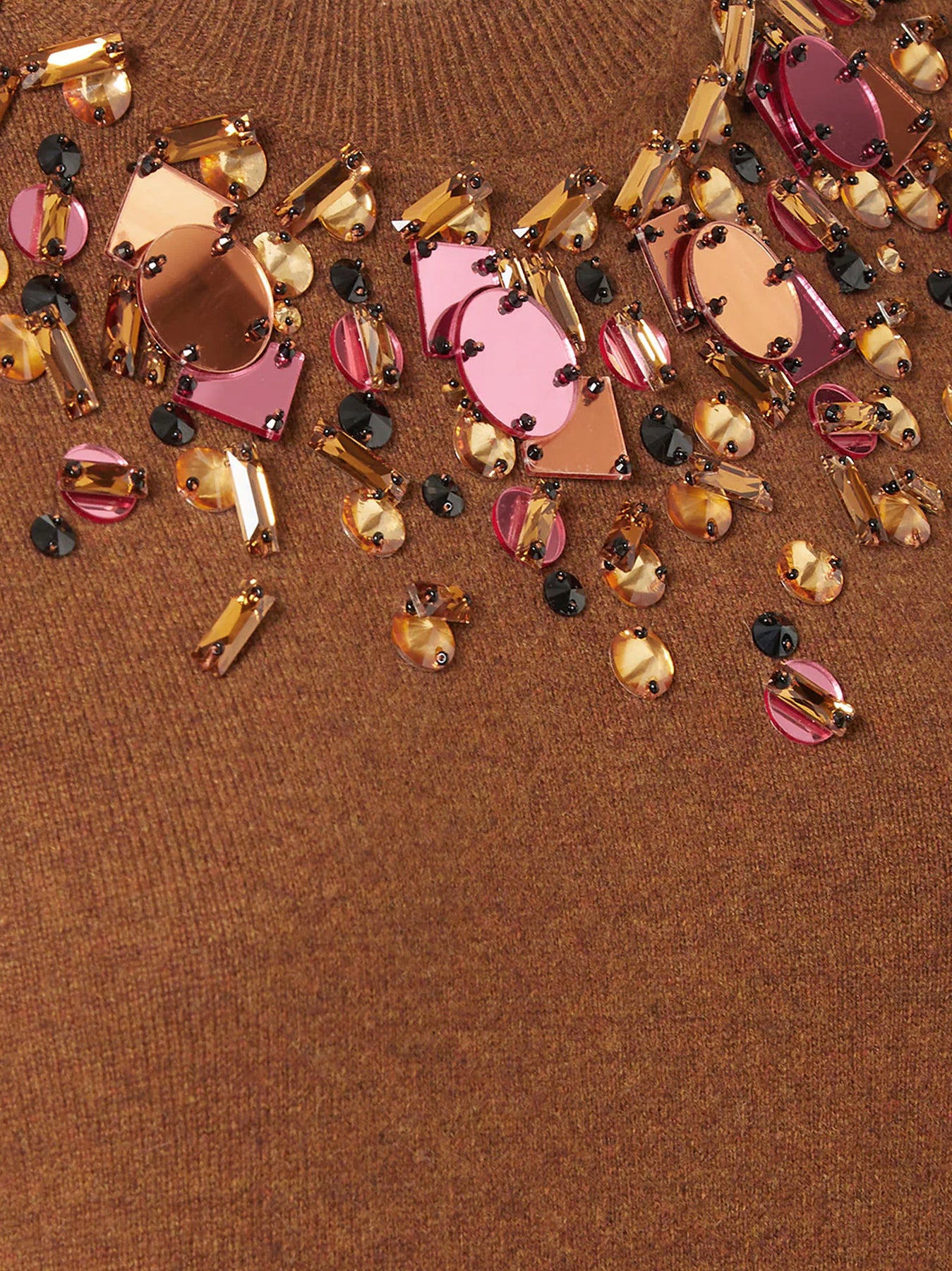Three-dimensional embroidery with sequins, microbeads, and mirrored appliqués Ribbed crew-neck Sleeveless Regular fit Made in Italy 70% wool, 30% cashmere SKU: FZXE01AUZWF1T6K