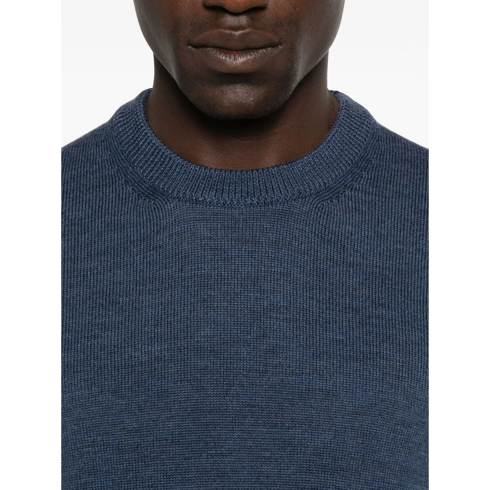blue wool crew neck long sleeves ribbed cuffs ribbed hem