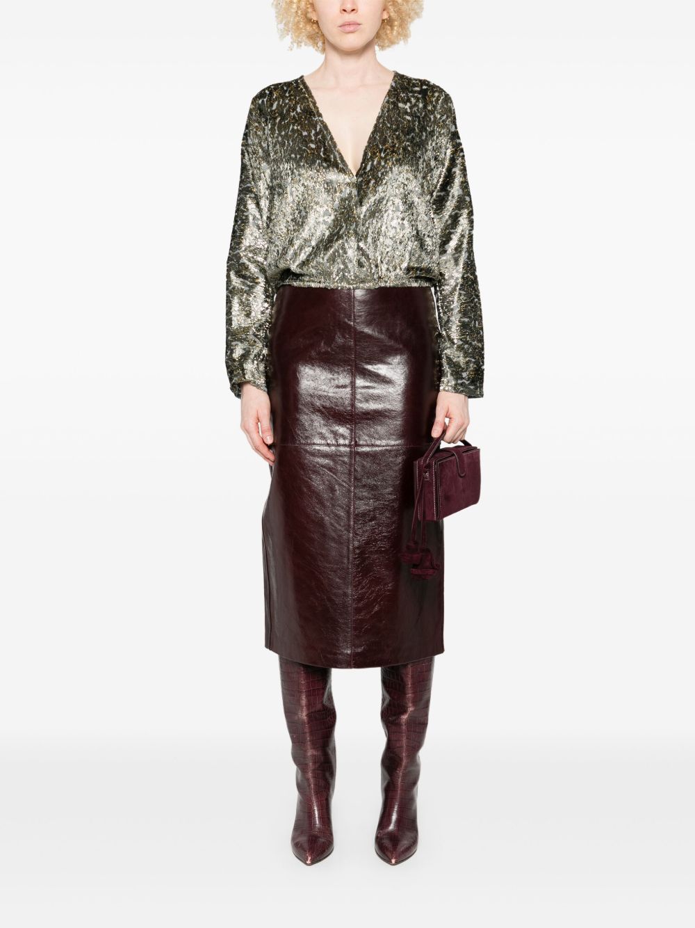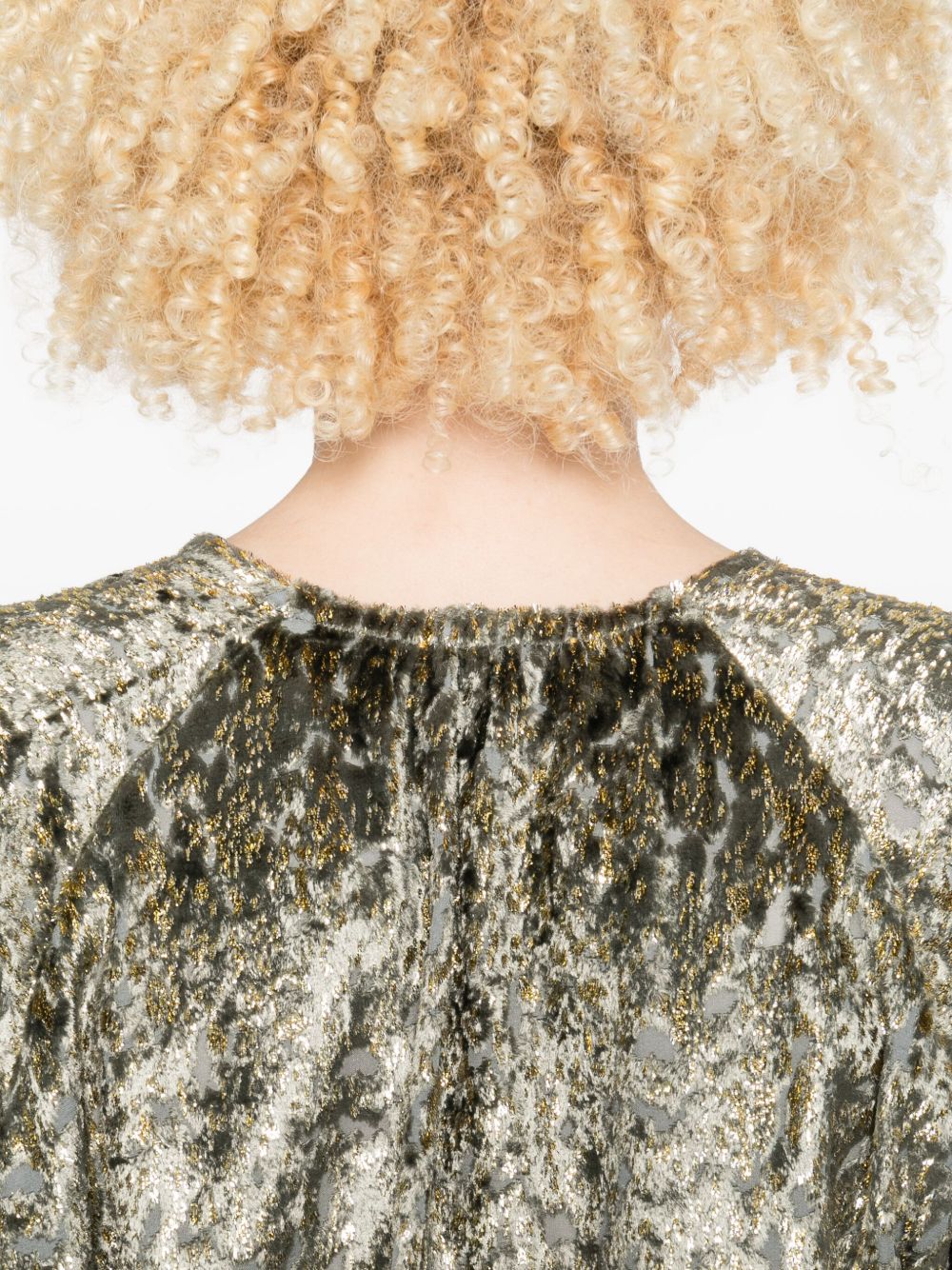 silver metallic effect V-neck long sleeves crossed front elasticated hem
