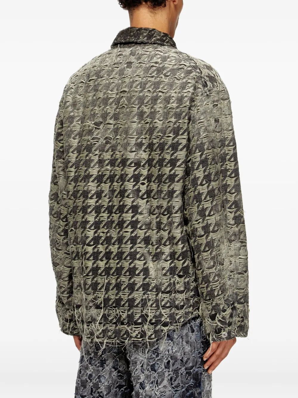 Giacca denim con motivo pied-de-poule Origine: Italia Caratteristiche grigio fantasia pied-de-poule bordi sfilacciati chiusura con zip scollo con colletto maniche lunghe Composizione Esterno: cotone 100% Istruzioni per il lavaggio Leggi le indicazioni del produttore ID A213510CEBJ