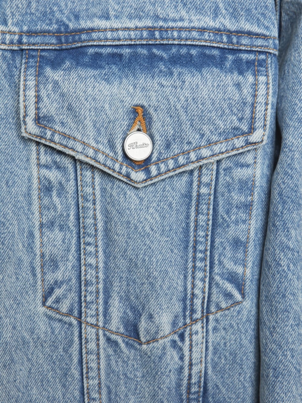 Grizzo denim jacket from KHAITE featuring blue, cotton, classic collar, long sleeves, button cuffs, front button fastening, two chest flap pockets, belt loops and straight hem.