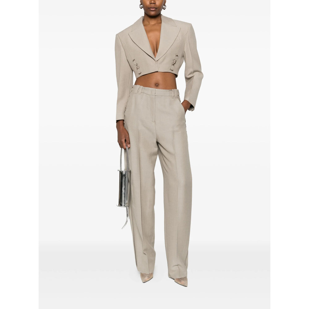 beige lace-up detail long sleeves