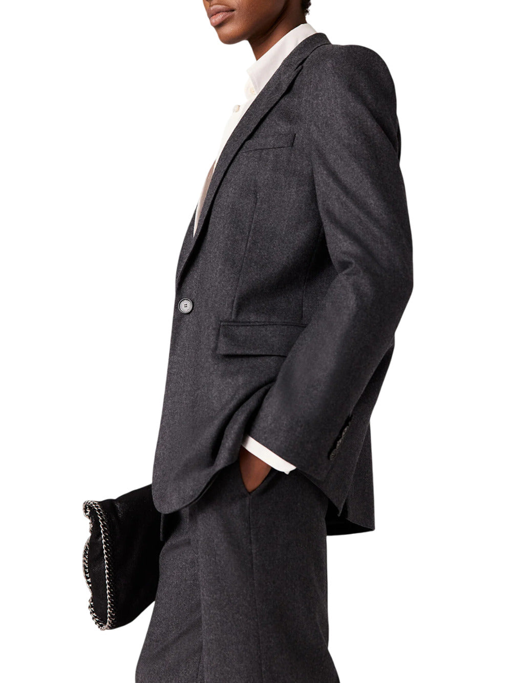 Giacca boyfriend in flanella iconica Colore: Grigio cenere Monopetto Spalline Maniche lunghe revers a lancia Due tasche con patta Chiusura con bottoni Prodotto in Bulgaria ID 6501393CU703