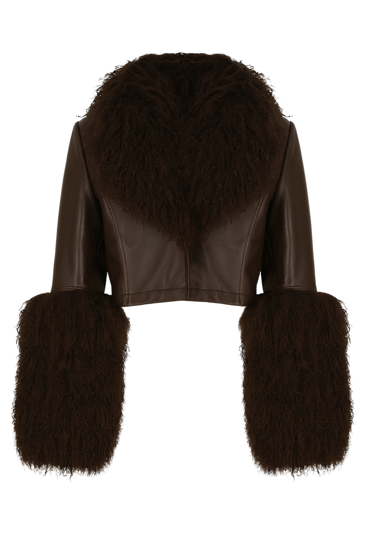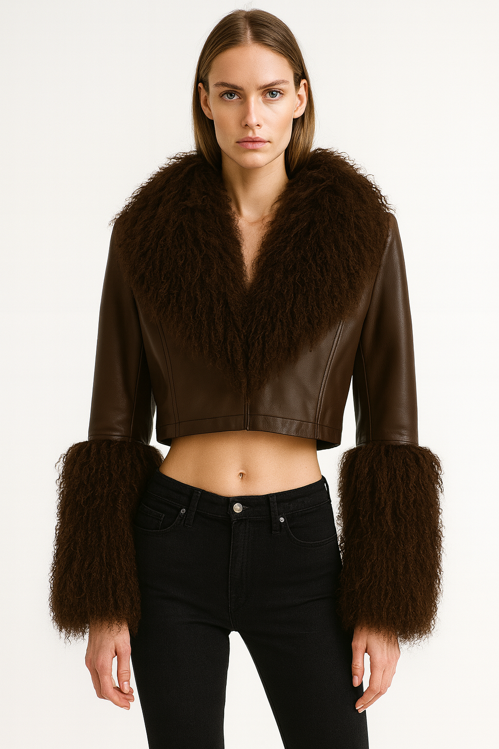 Wanan Touch Giacca Giulienne in pelle di agnello con inserti in lana di Mohair con pregiata lavorazione effetto pelliccia. Chiusura con bottone.