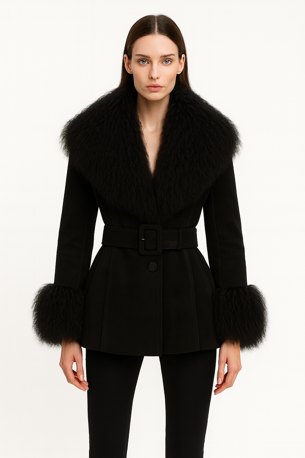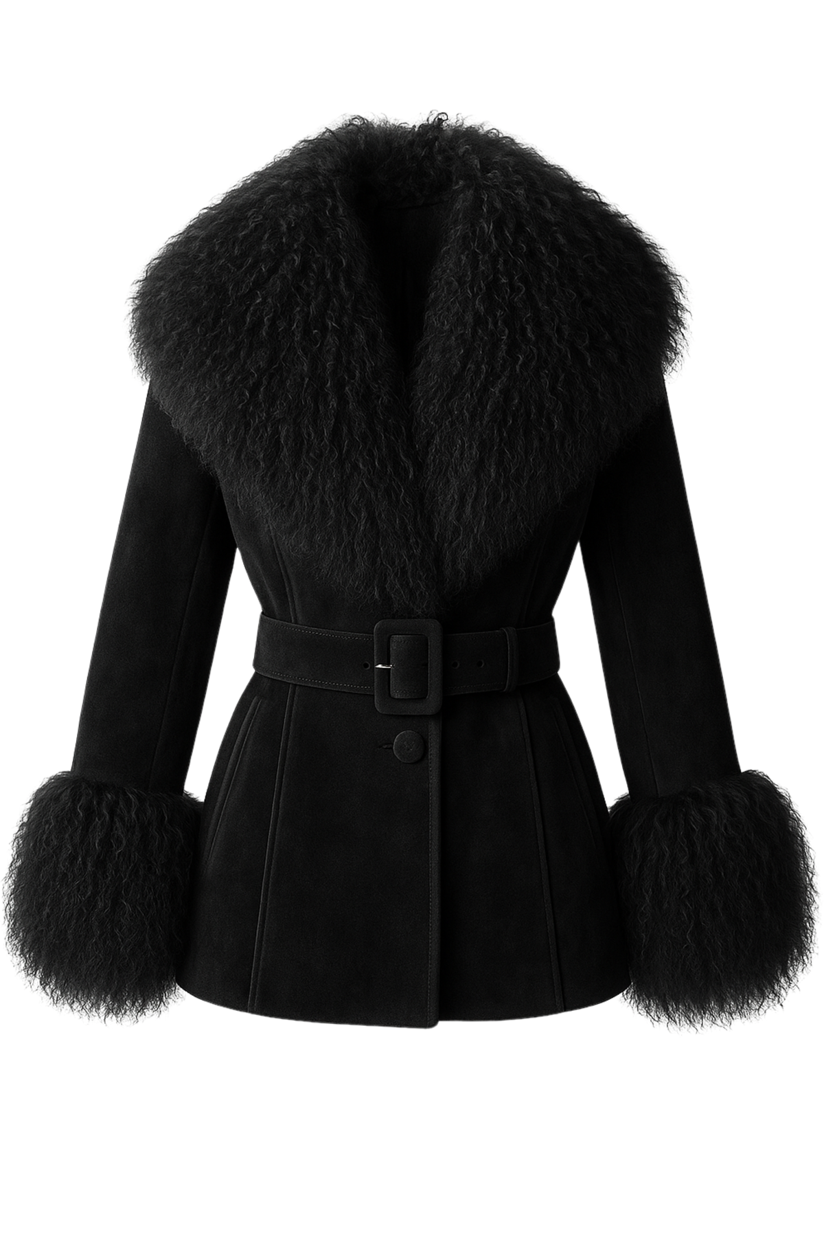 Giacca Pegghy Nera in Camoscio e Mongolia