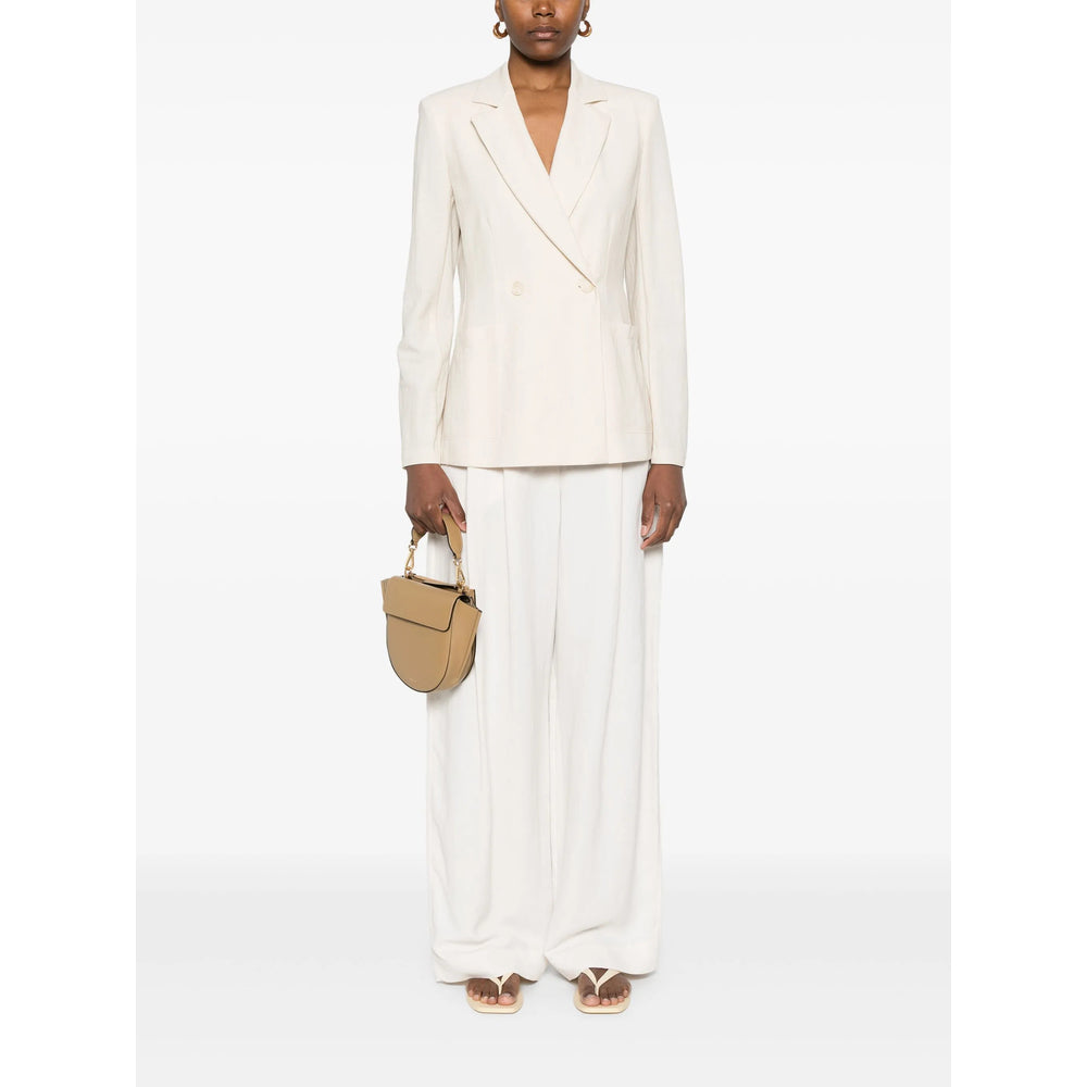 light beige double-breasted button fastening two side patch pockets notched lapels long sleeves