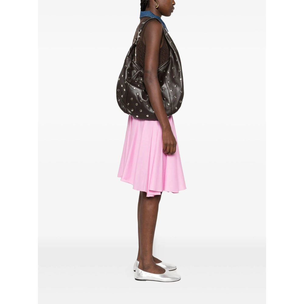 brown calf leather stud embellishments zip fastening curved silhouette