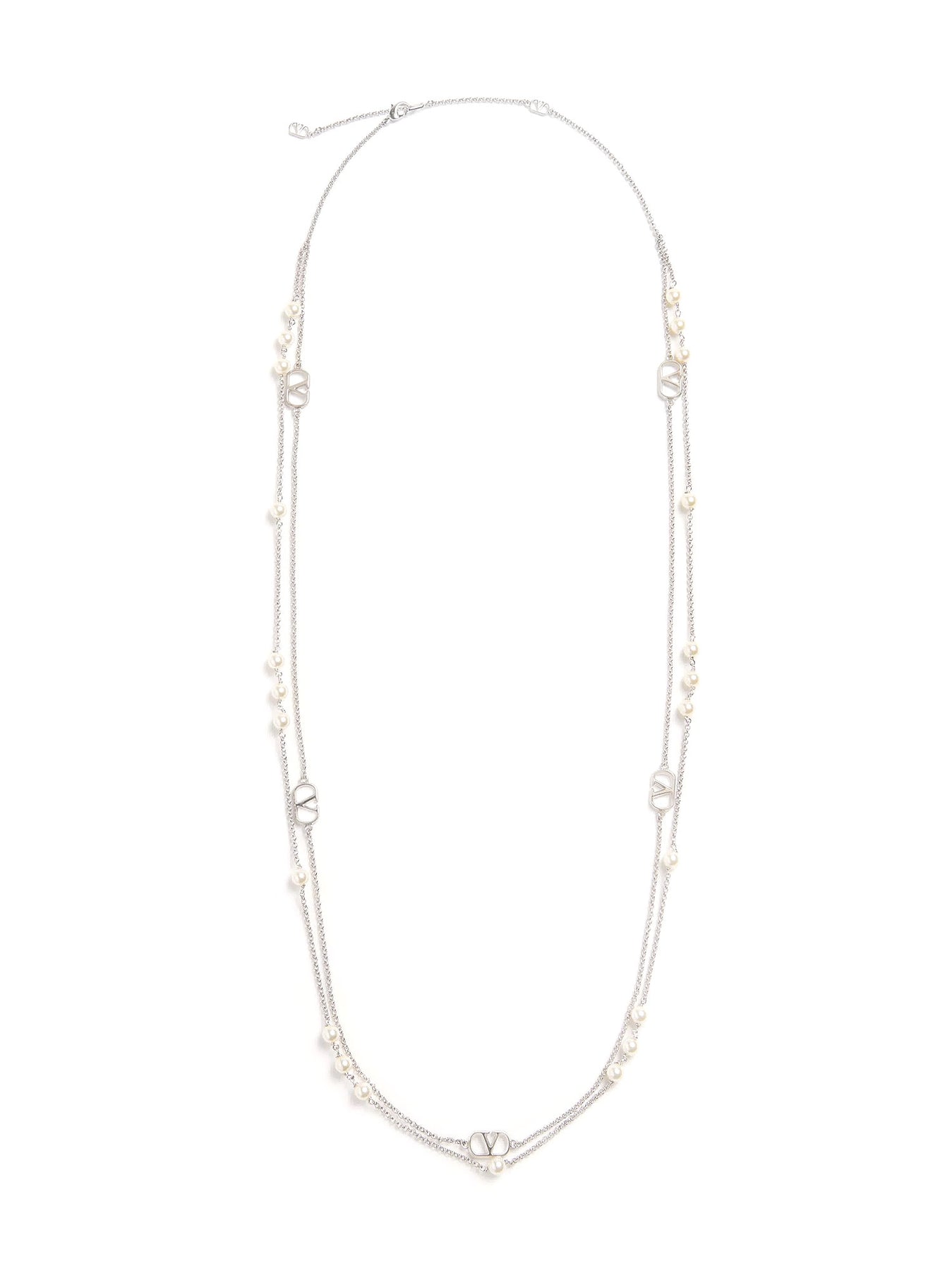 Metal hook closure Double chain Signature VLogo detail Pearl detail Made in Italy L: 90 cm SKU: 6Y2J0S34UXM_6RU