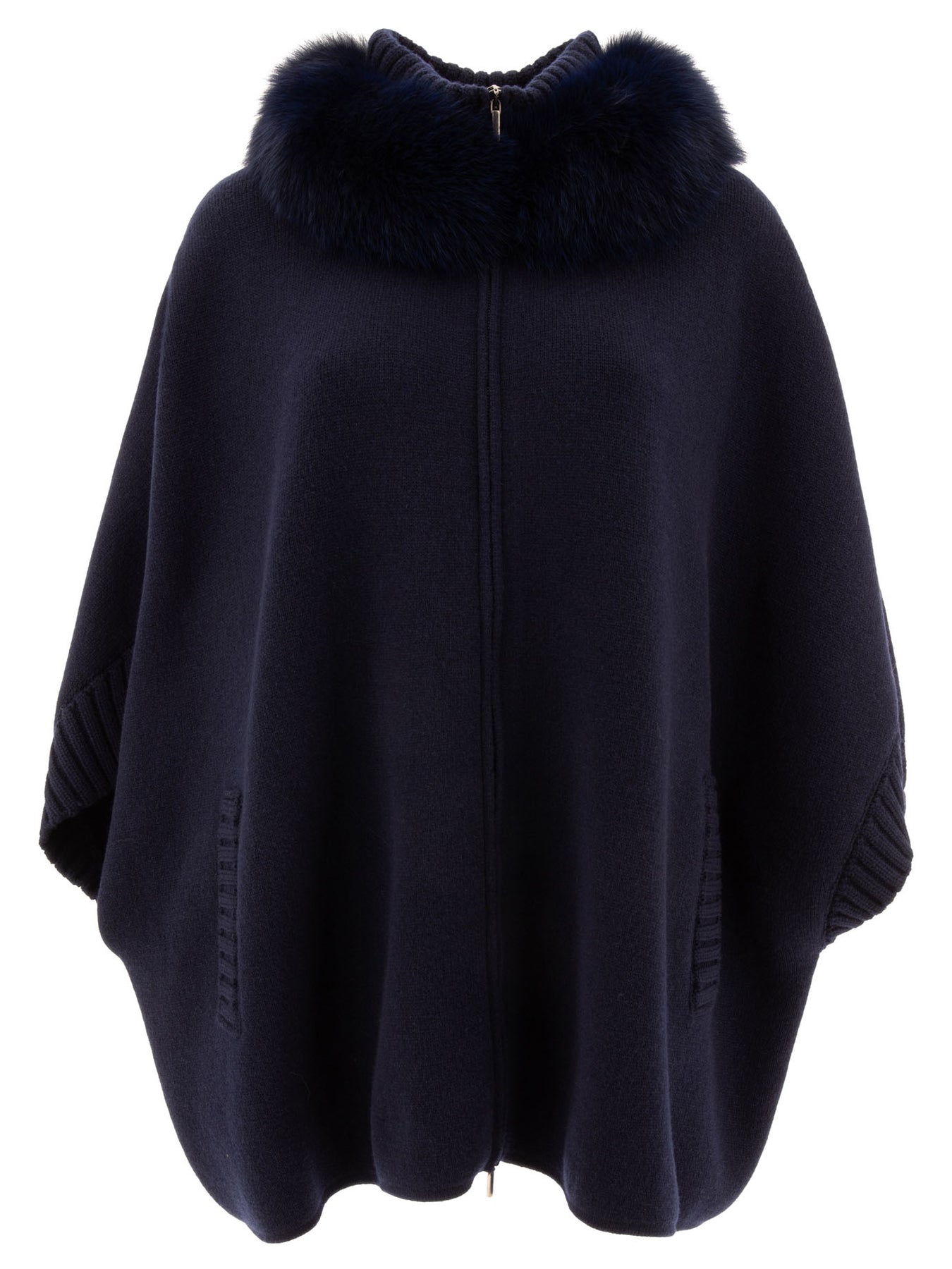 Wool And Cashmere Poncho Jackets And Coats Blu