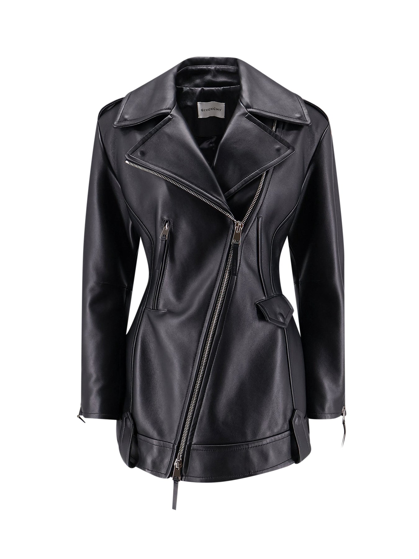 Asymmetrical zip closure with two-way zip Front zip pocket Flap pocket with button Maxi belt loops Made in Italy 100% leather Lining: 100% viscose Padding: 100% polyester SKU: BW00SR61VD001