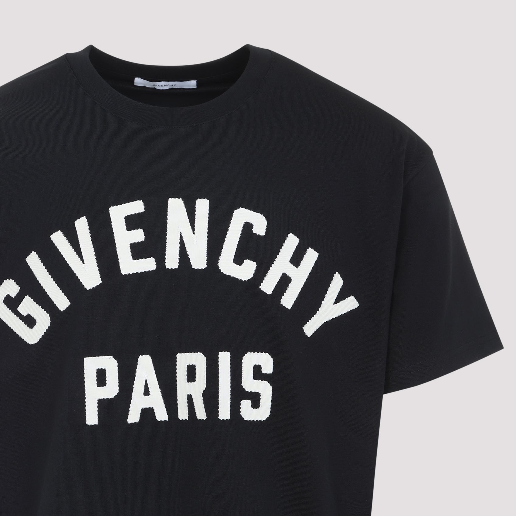 Givenchy Black and WhitevCotton T-Shirt. Pure black cotton t-shirt, round neck, front white tonal lettering logo, short sleeves, tonal stitching, straight hem.