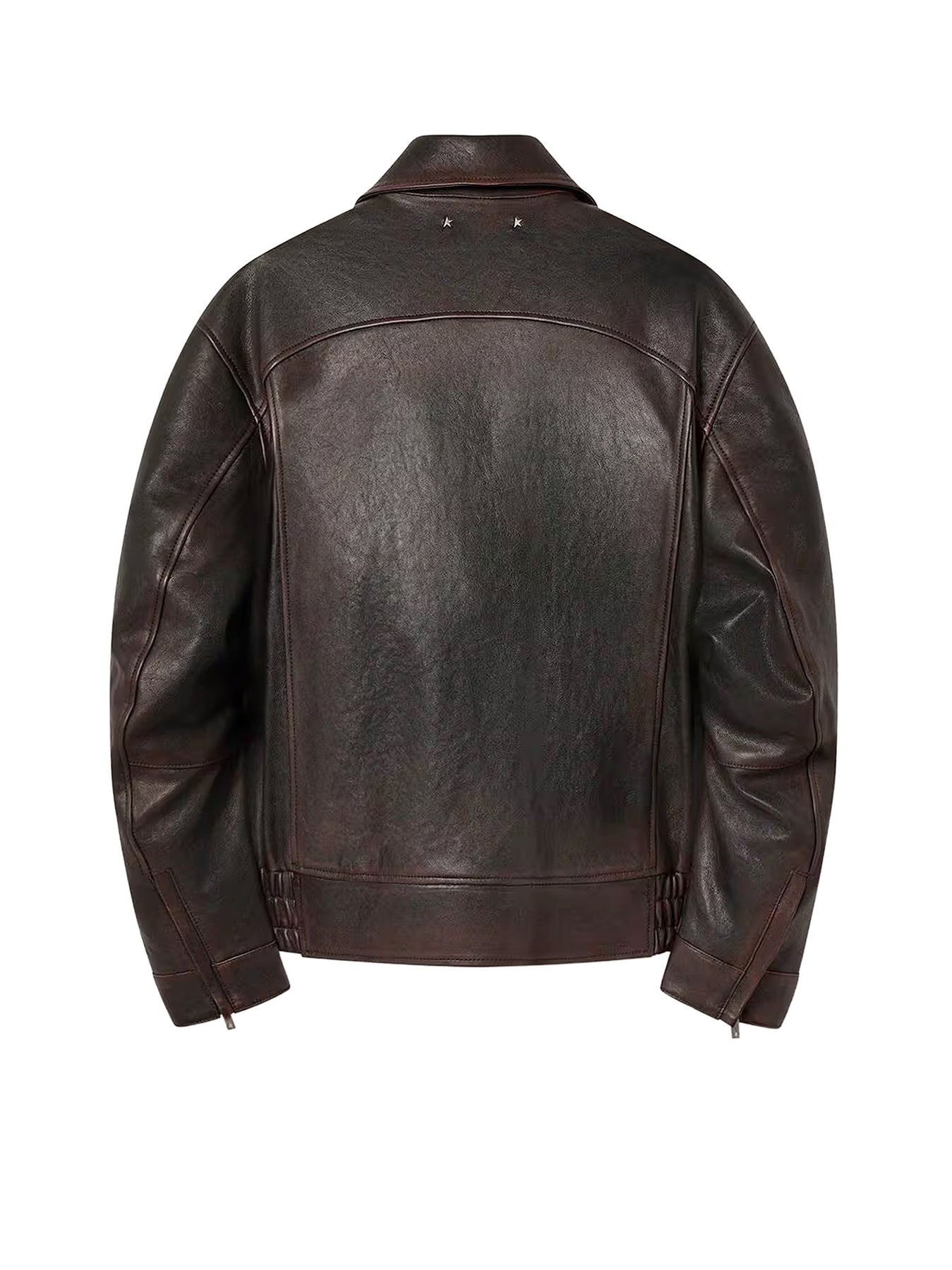 Hidden zip and snap button closure Pointed collar with stitched trim Double vertical front pocket Elasticized bottom Made in Italy 100% leather Lining: 100% viscose SKU: GMP02531P00230140249