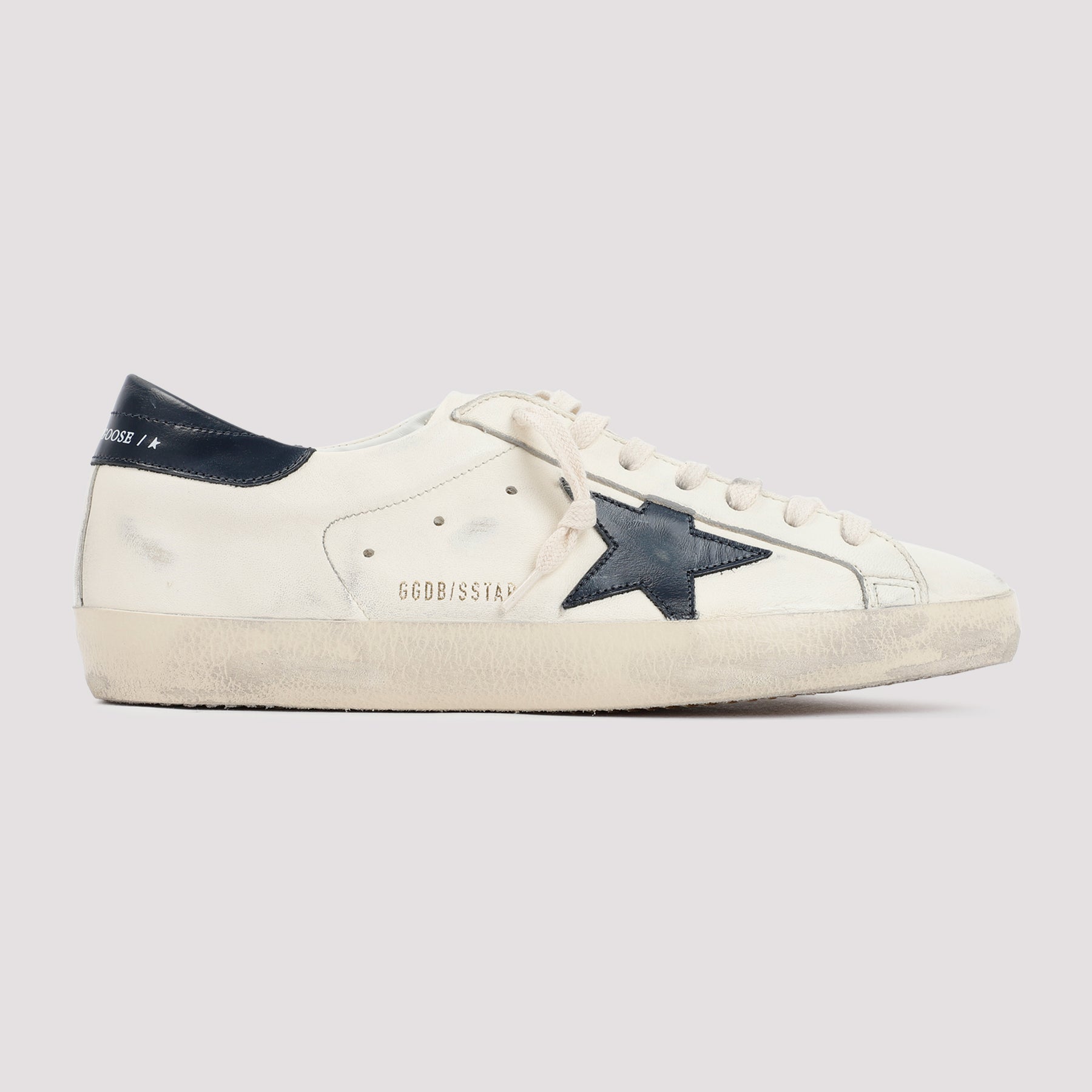 Golden Goose Beige Superstar Leather Sneakers. Beige leather upper, signature star on side, round toeline, lace-up fastening, rubber outsole, vintage finish, code lettering on side, regular fit.