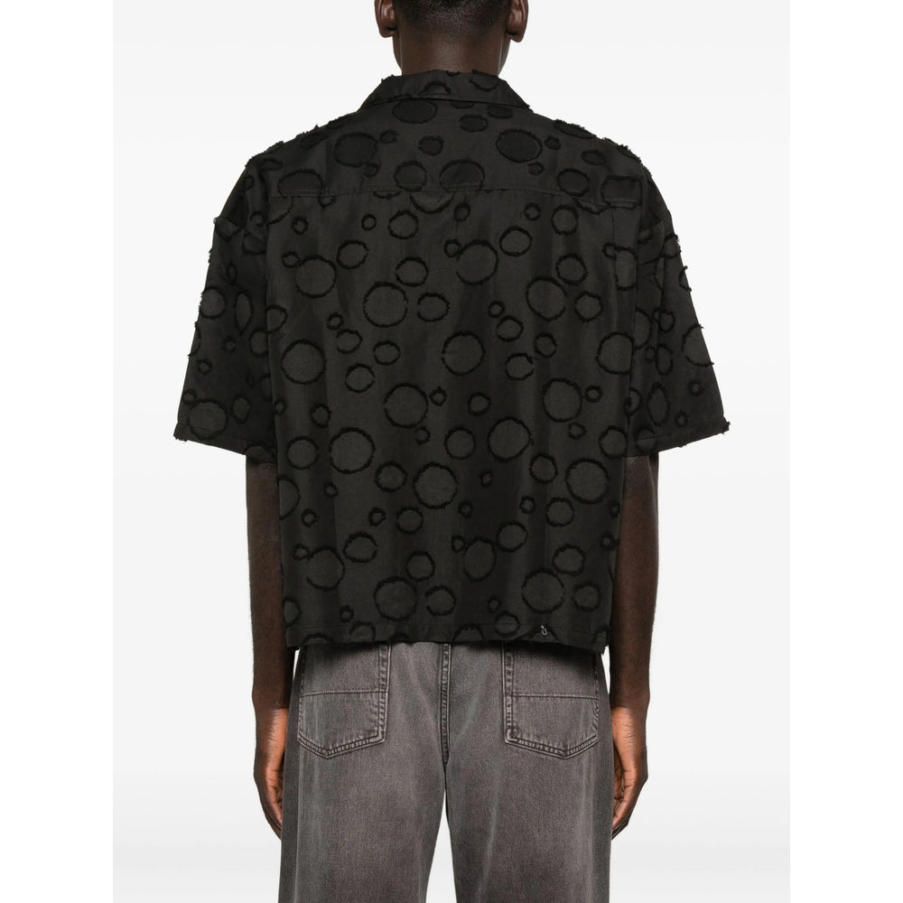 black circle pattern chest pocket short sleeves button fastening raw hem