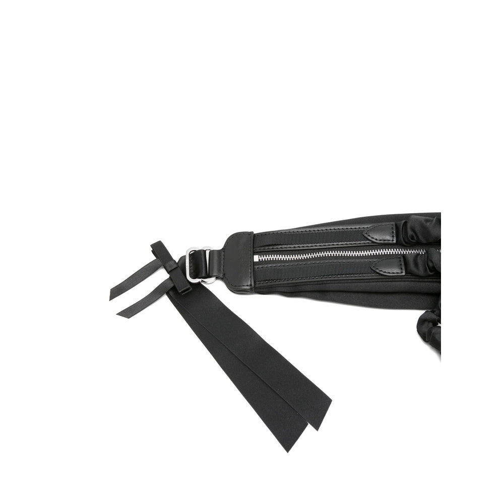 black ruched shoulder straps zip fastening ribbon detail silver-tone hardware