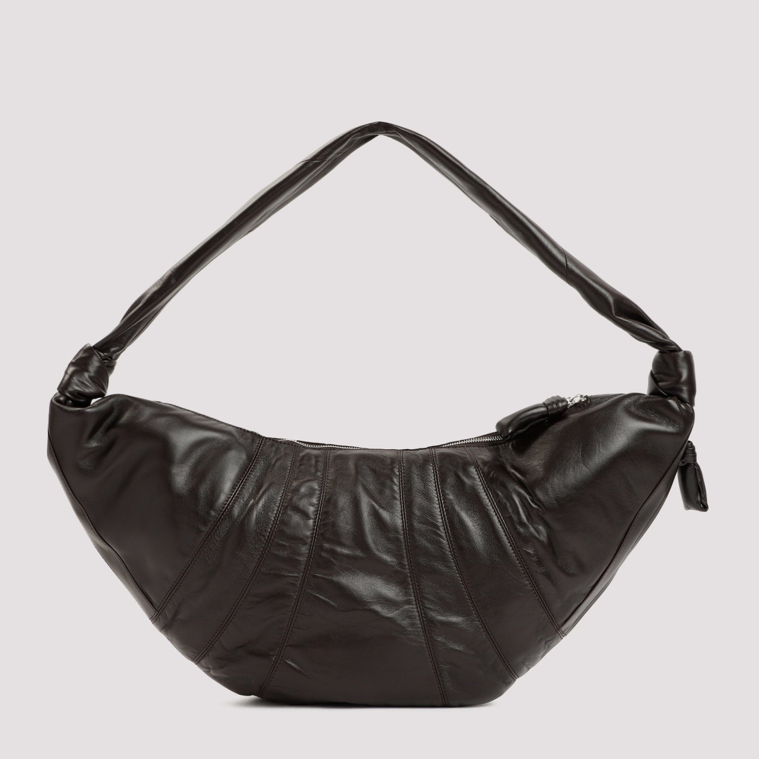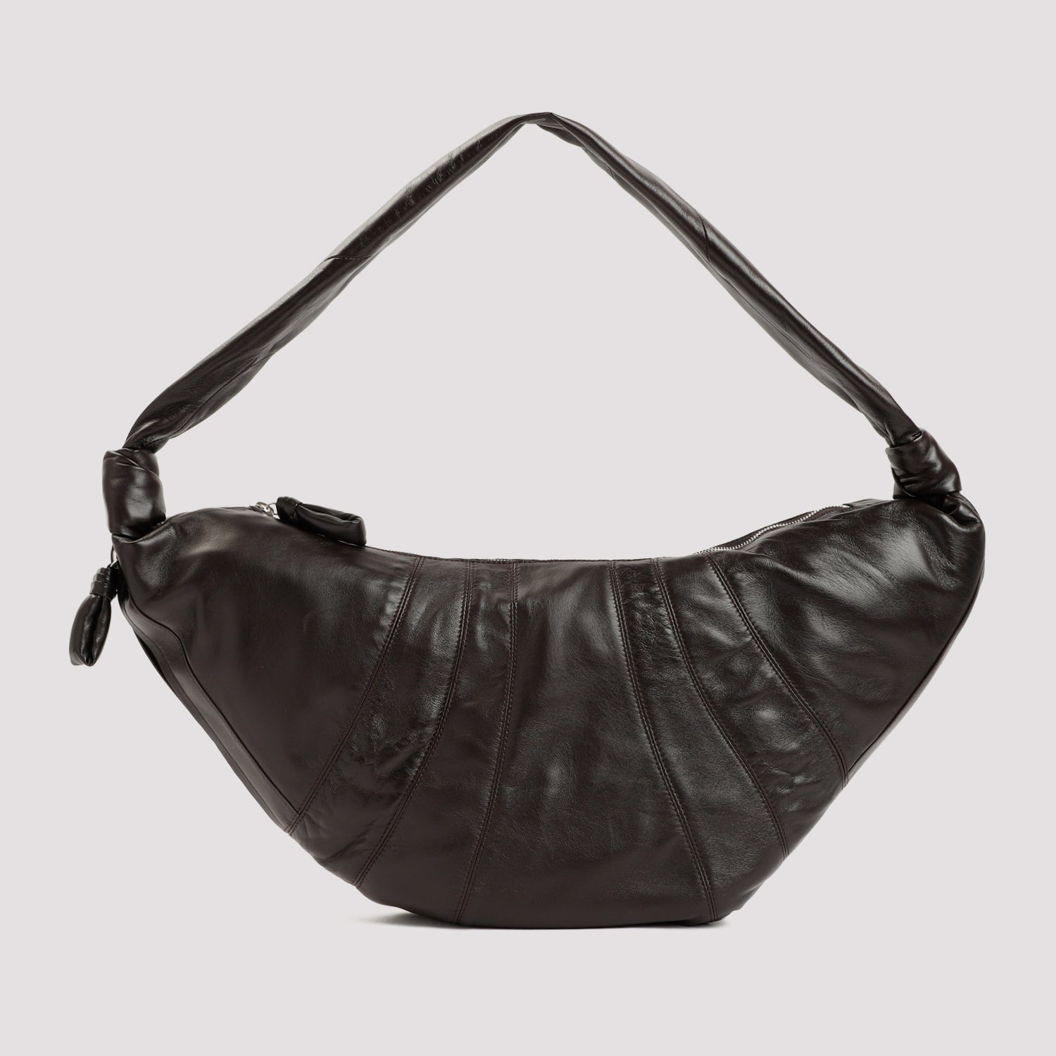 Lemaire Dark Choccolate leather Large Croissant Bag. Dark Choccolate leather, knot detailing on shoulder strap, internal logo patch, top zip fastening, main compartment, fully lined.
