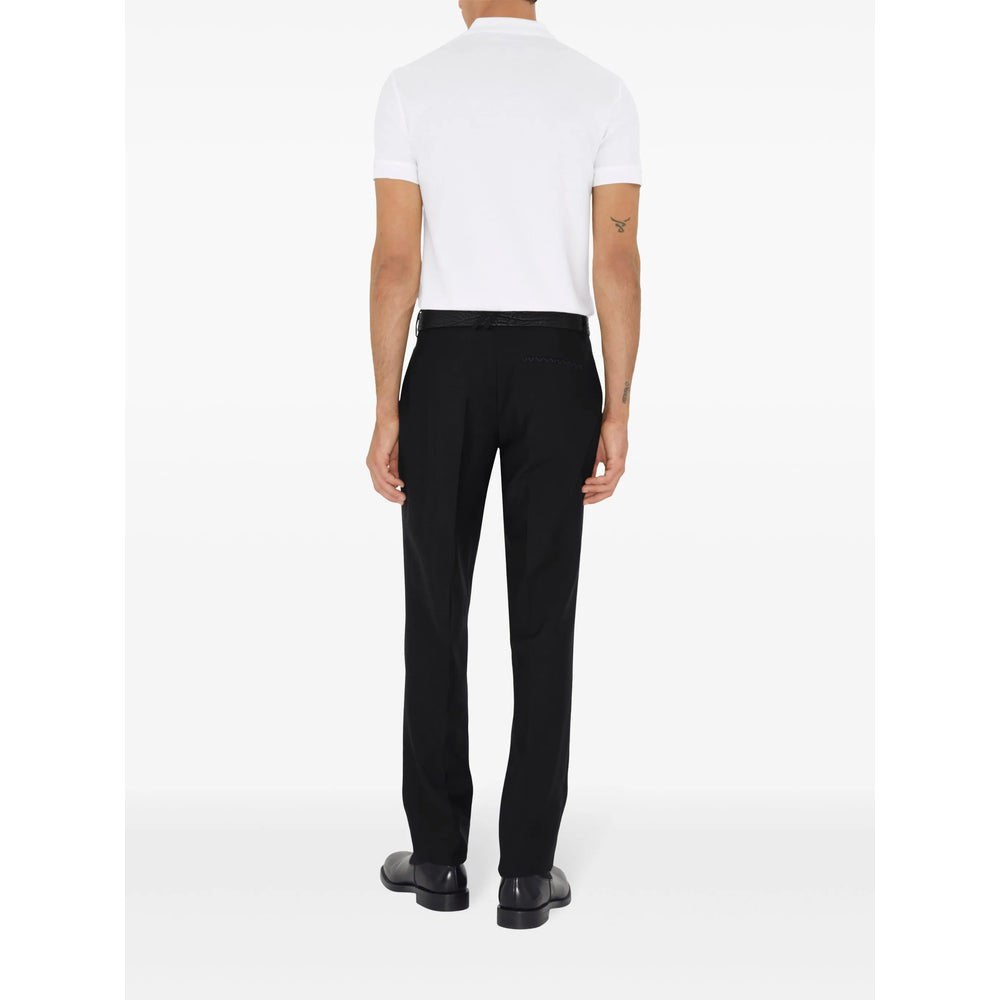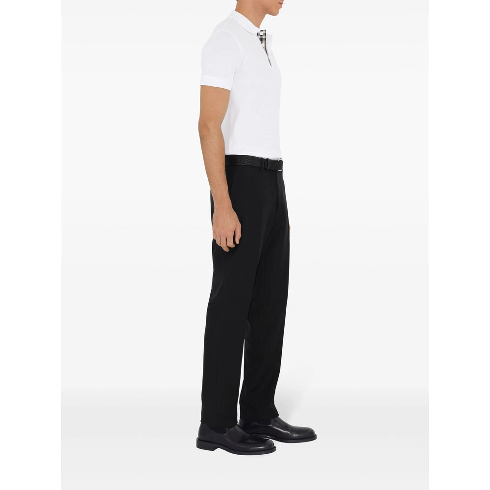 white cotton piqué weave front button placket polo collar embroidered logo at the chest signature Equestrian Knight motif short sleeves straight hem slim cut