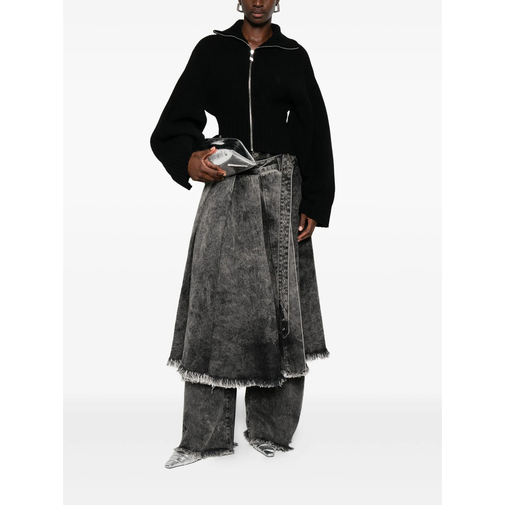 black ribbed knit zip fastening high neck long sleeves cropped length