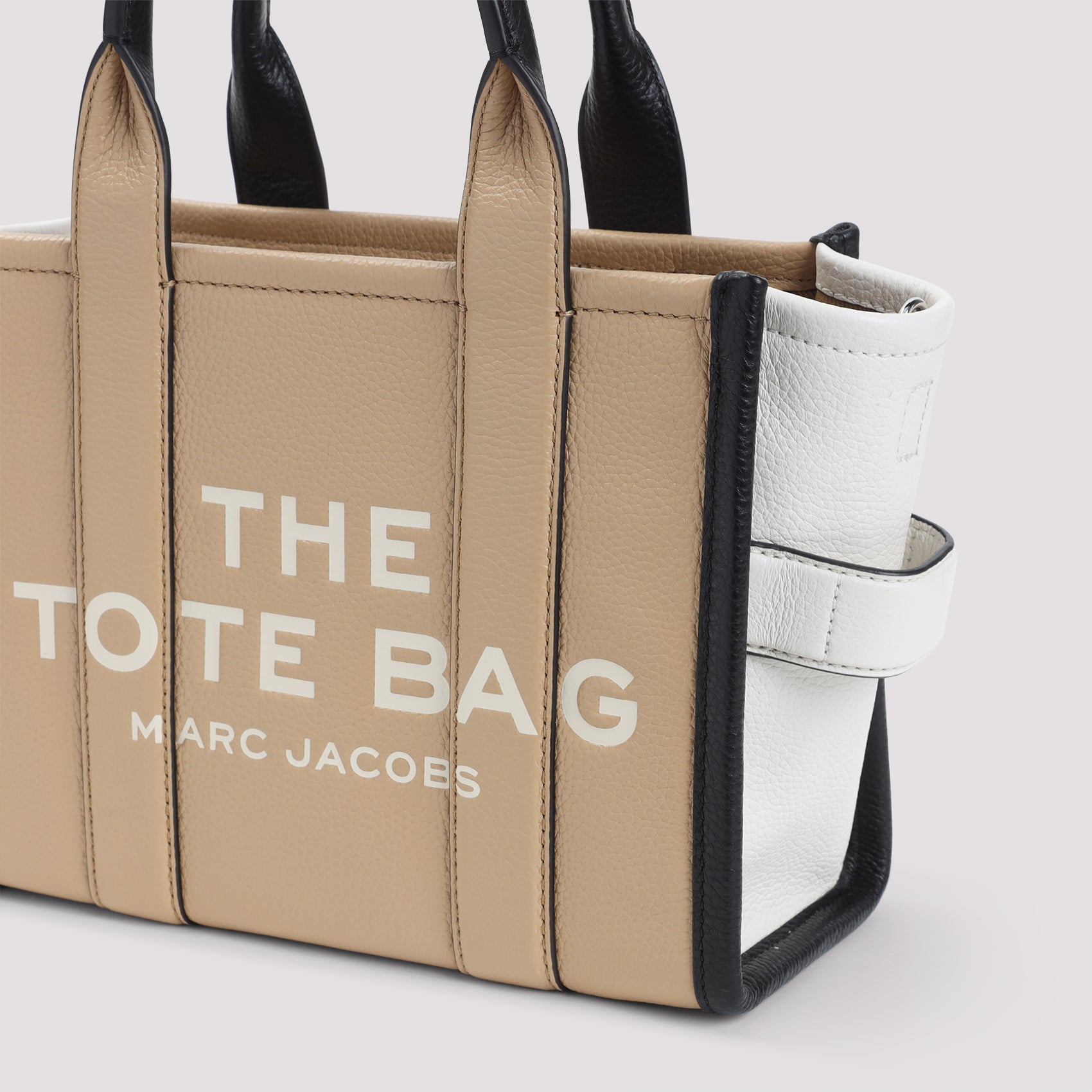 Marc Jacobs Camel Beige Cow Leather The Small Tote Bag. Pure cow leather bag, top handles, front contrasting white lettering logo, contrasting black edges, back pocket with white lettering logo, side white details, black leather adjustable and detachable shoulder strap, one main compartment.