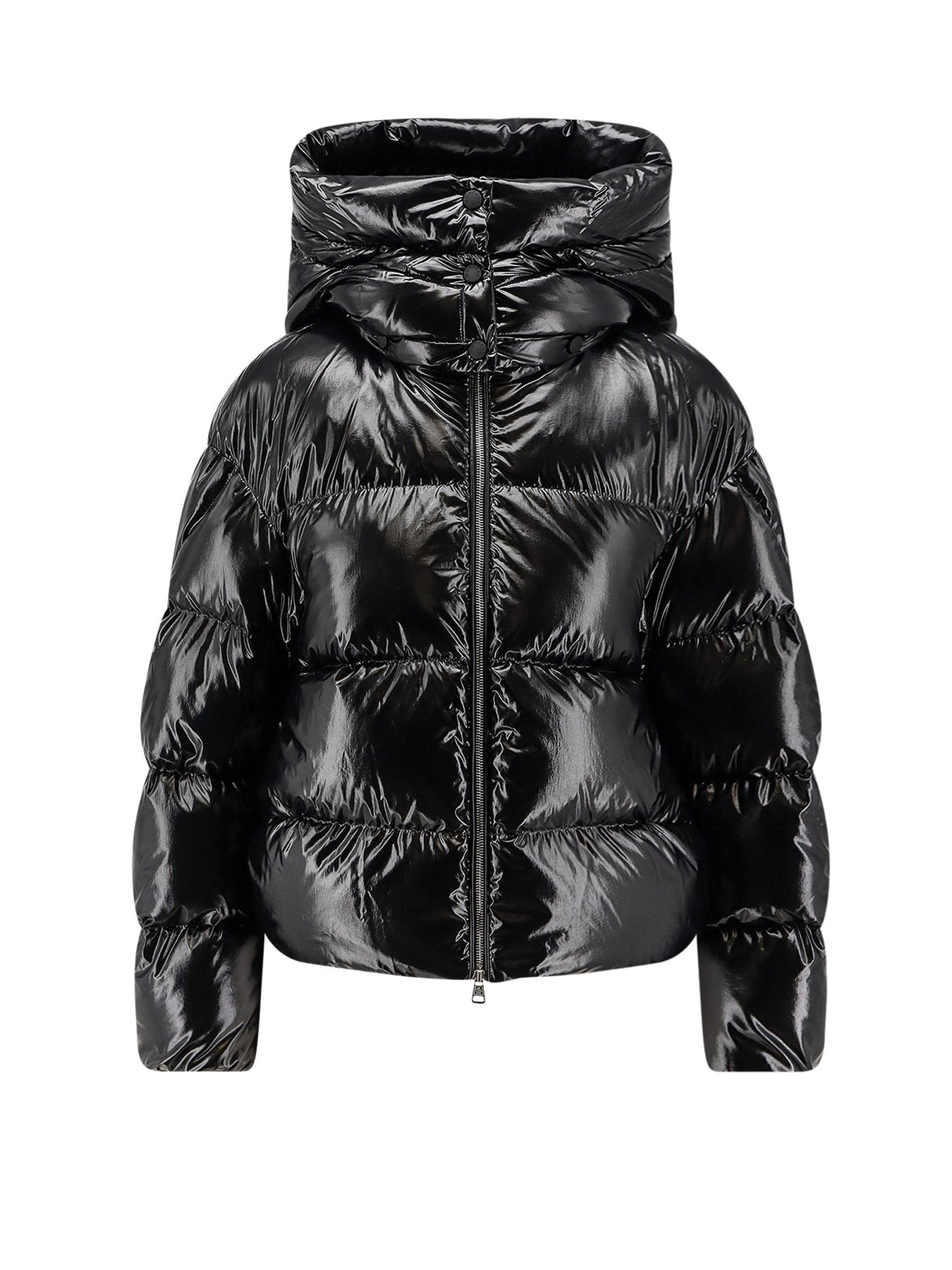 Zip closure and removable padded hood Logo patch on the left sleeve Side pockets with button Adjustable drawstring at the bottom 100% polyamide Padding: 90% down, 10% feathers Lining: 100% polyamide SKU: K24031A00006M6517999
