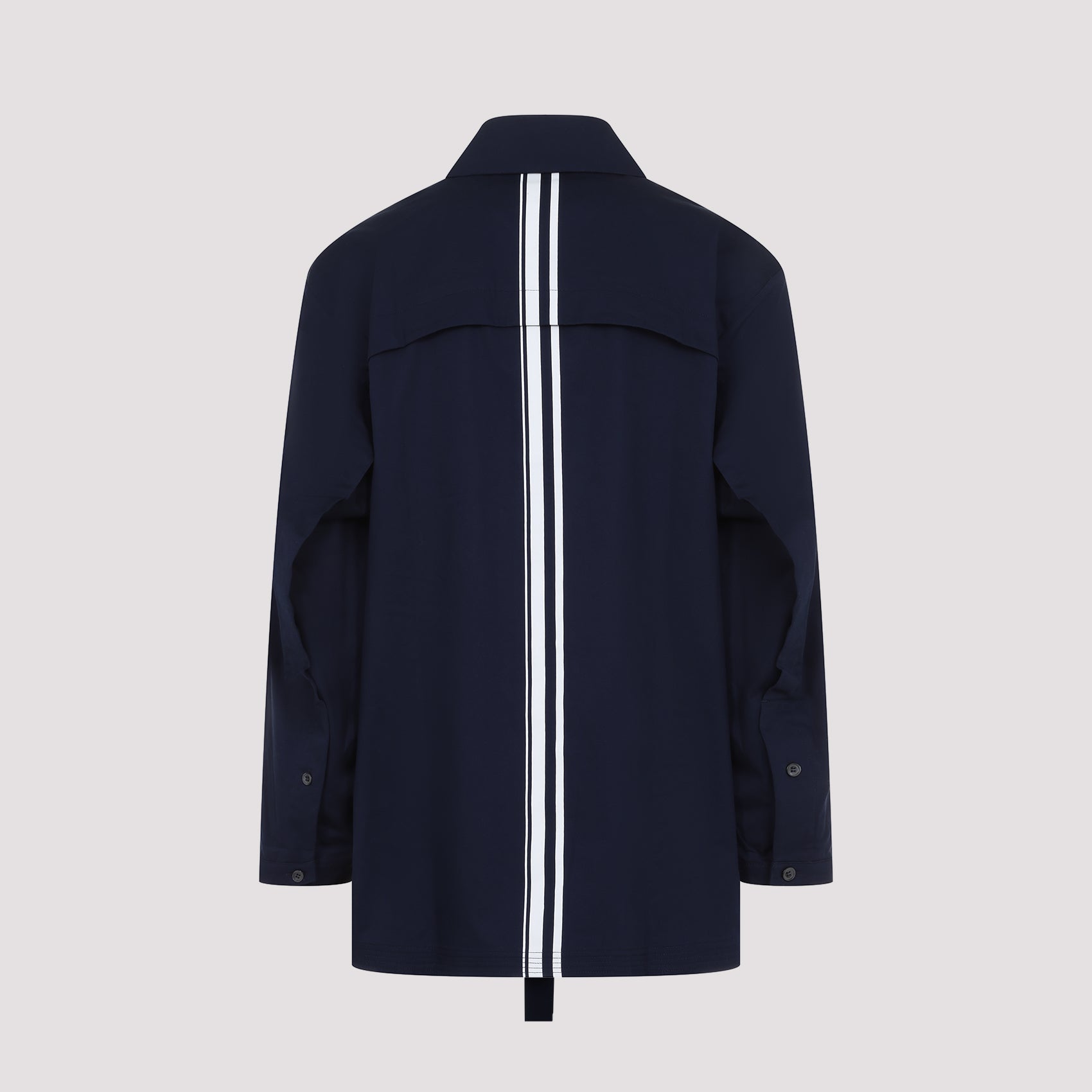 Mordecai Ink Blue Pocket Collar Shirt. Pure ink blue shirt, pointed collar, front buttoned fastening, back white stripe details, long sleeves, buttoned cuffs, straight hem.