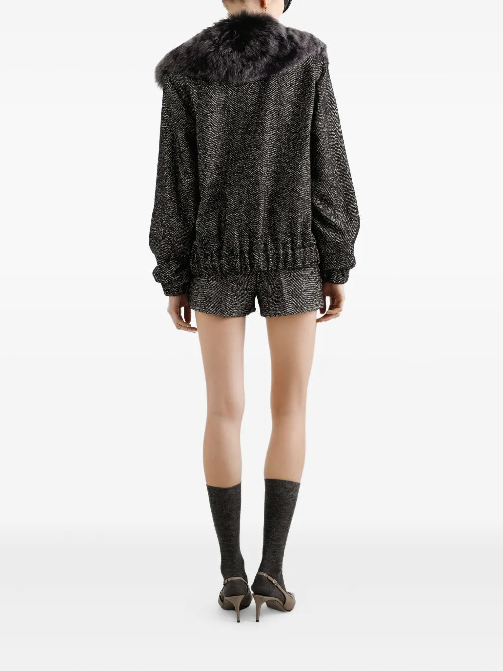 Bomber con motivo a spina di pesce Origine: Italia Caratteristiche nero stampa con motivo a spina di pesce chiusura con zip maniche lunghe orli elasticizzati Composizione lana vergine 48%, lana 35%, poliammide 16%, elastam 1% Istruzioni per il lavaggio Leggi le indicazioni del produttore ID F9S93TFCBAJ