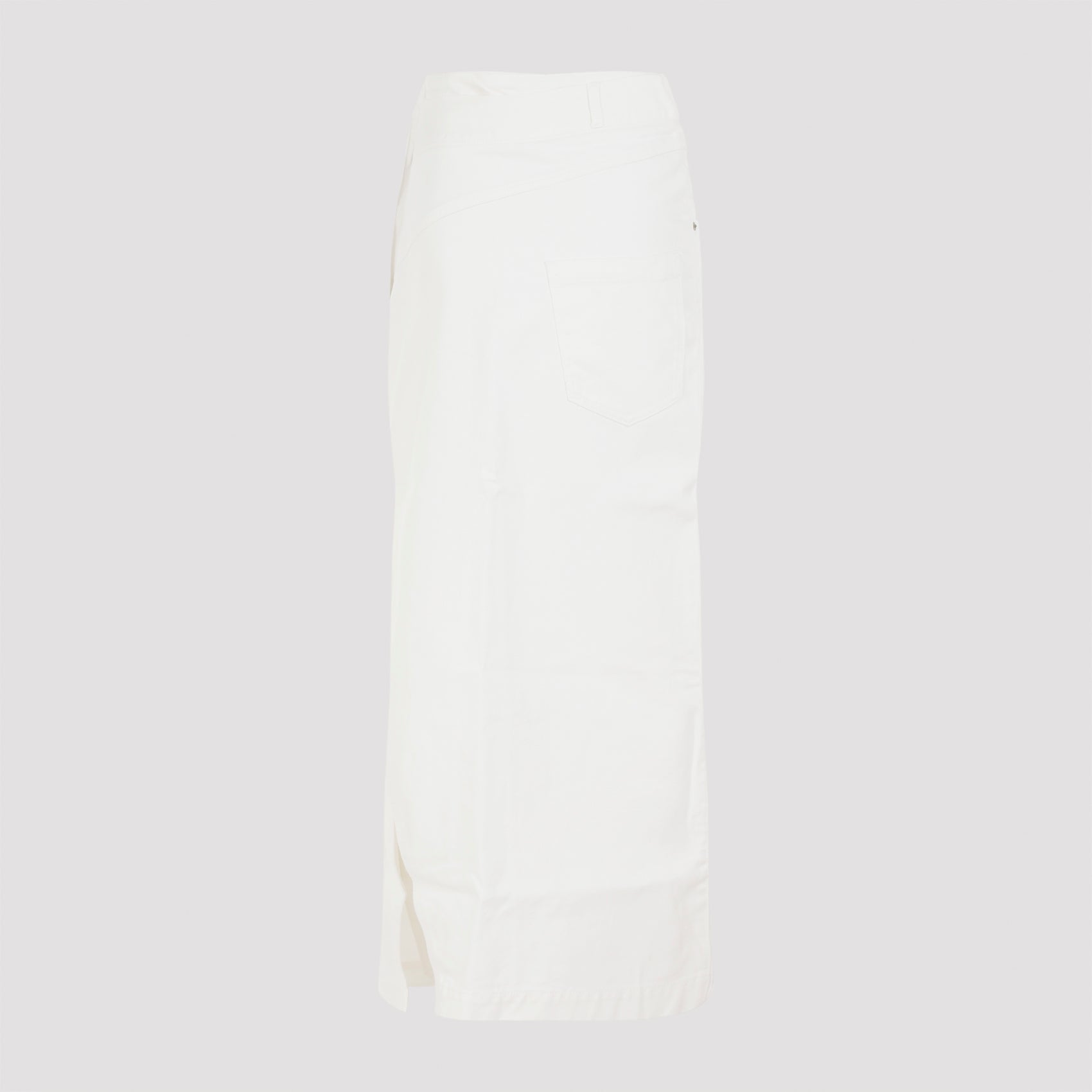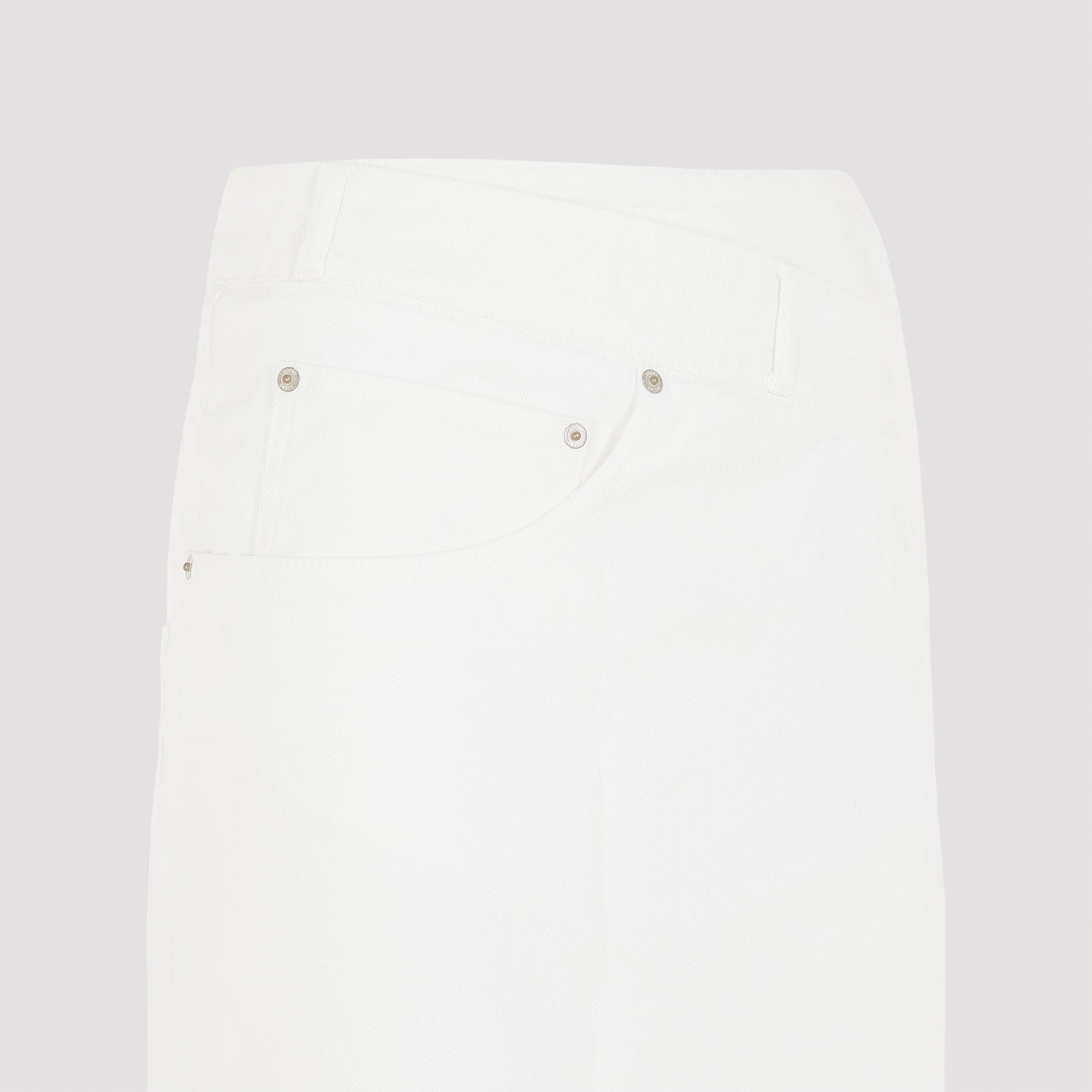 Loewe White Cotton Deconstructured Skirt. Pure cotton skirt, high waist, asymmetrical construction, belt loops, side zipped fastening, front patch pocket and coin pocket, back patch pocket, back diagonal slit.