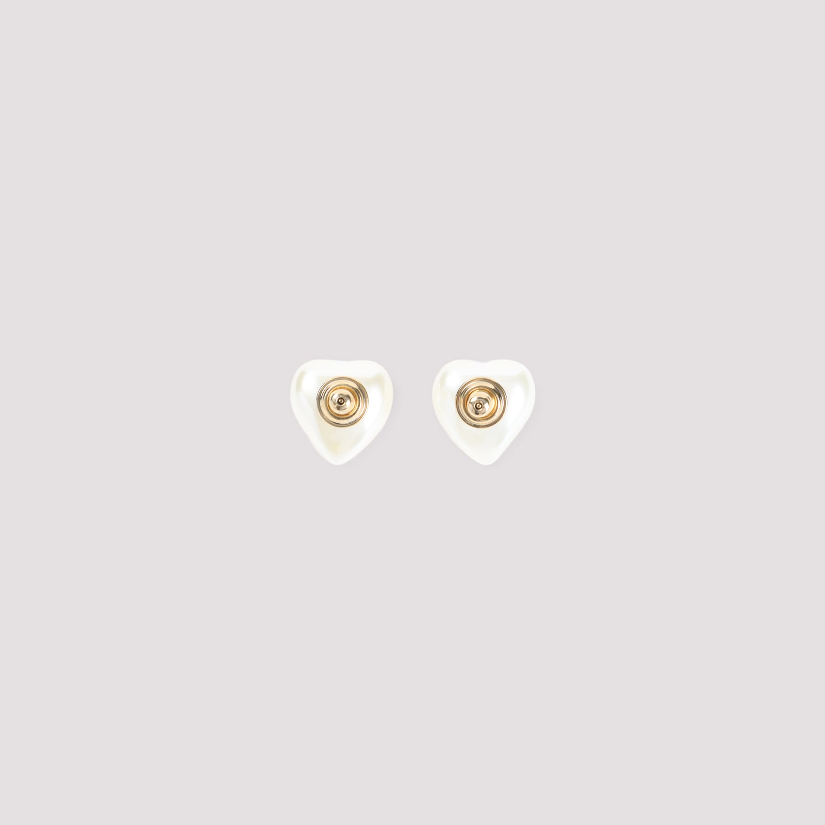 Valentino Garavani Gold Brass Earrings. Crafted from gold-finish brass, a heart-shaped pearl, a Vlogo detail on the front, and a push-back fastening.