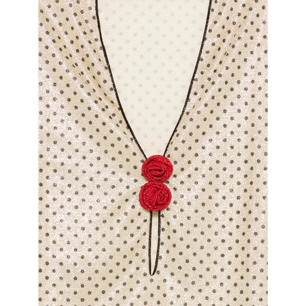 black polka dot pattern rose detail V-neck long sleeves black trim