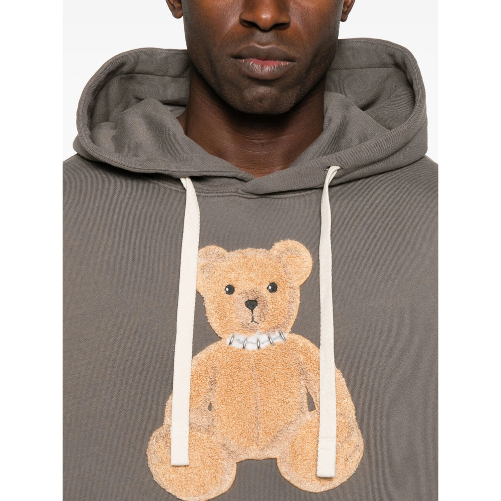 dark grey embroidered bear motif drawstring hood kangaroo pocket ribbed cuffs ribbed hem